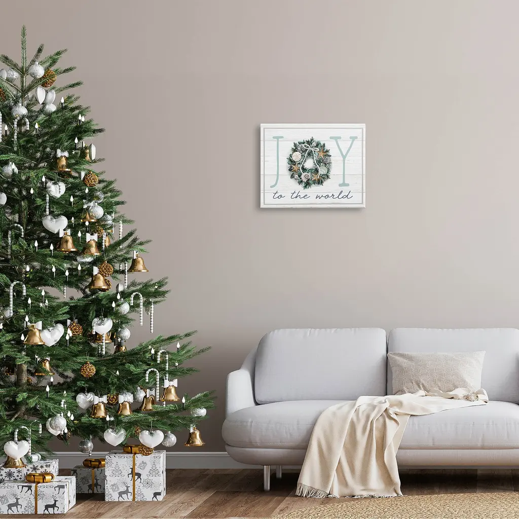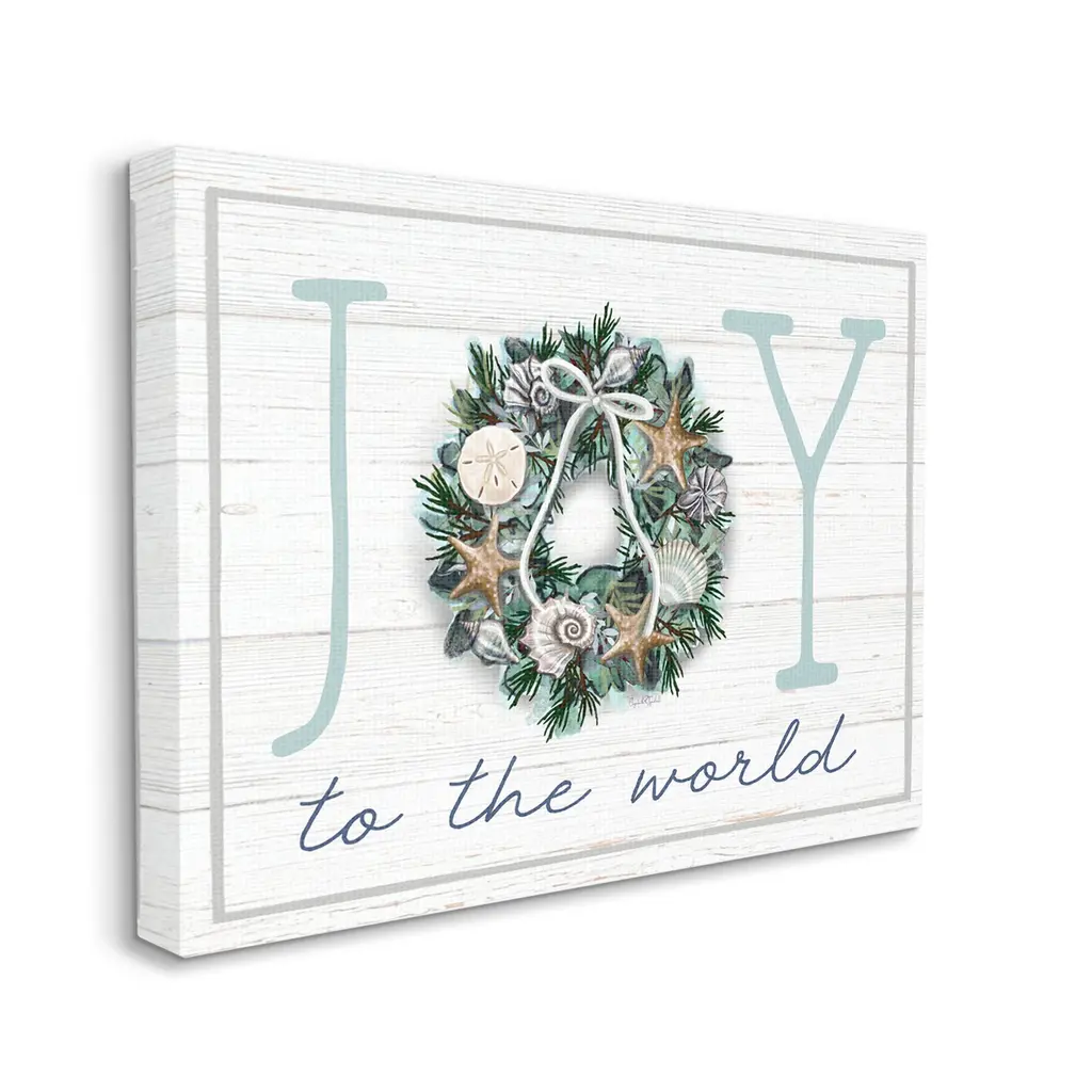 Stupell Joy To The World Nautical Wreath Canvas Wall Art, Design By Elizabeth Tyndall - 20 X 16