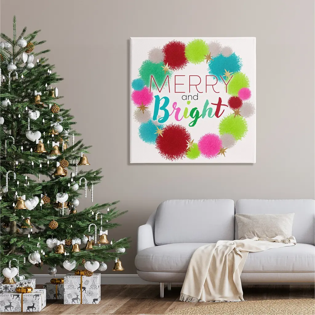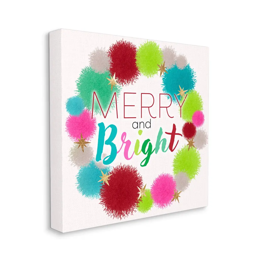 We create our stretched canvas to the highest standards. Using only the highest quality inks and canvas on Mimaki printers, we hand-cut and stretch each piece over a 1.5-inch thick wooden frame for hanging. As a result, the art comes ready to hang on the sturdy ledge with no installation required. Stupell Wall Art is made in the USA.Features: Dimensions: 17 x 1.5 x 17 InchesStretched Canvas Sizes Include Standard: 17 x 1.5 x 17 Large: 24 x 1.5 x 24 X-Large: 30 x 1.5 x 30 Oversized: 36 x 1.5 x 36Wall Art is Ready to Hang - No Installation or Hardware Needed. For Easy Set Up Lean or Layer Artwork on Shelf or Against Wall.Our stretched canvas is created with the highest standards. We use only the highest quality inks and canvas on our in house Mimaki printers, and then hand cut and stretch each piece over a 1.5 inch thick wooden frame for hanging. Made In USA.Artwork Relates To: Pom Pom, Holiday, Christmas, Stars, Merry And BrightDesign by Ziwei Li