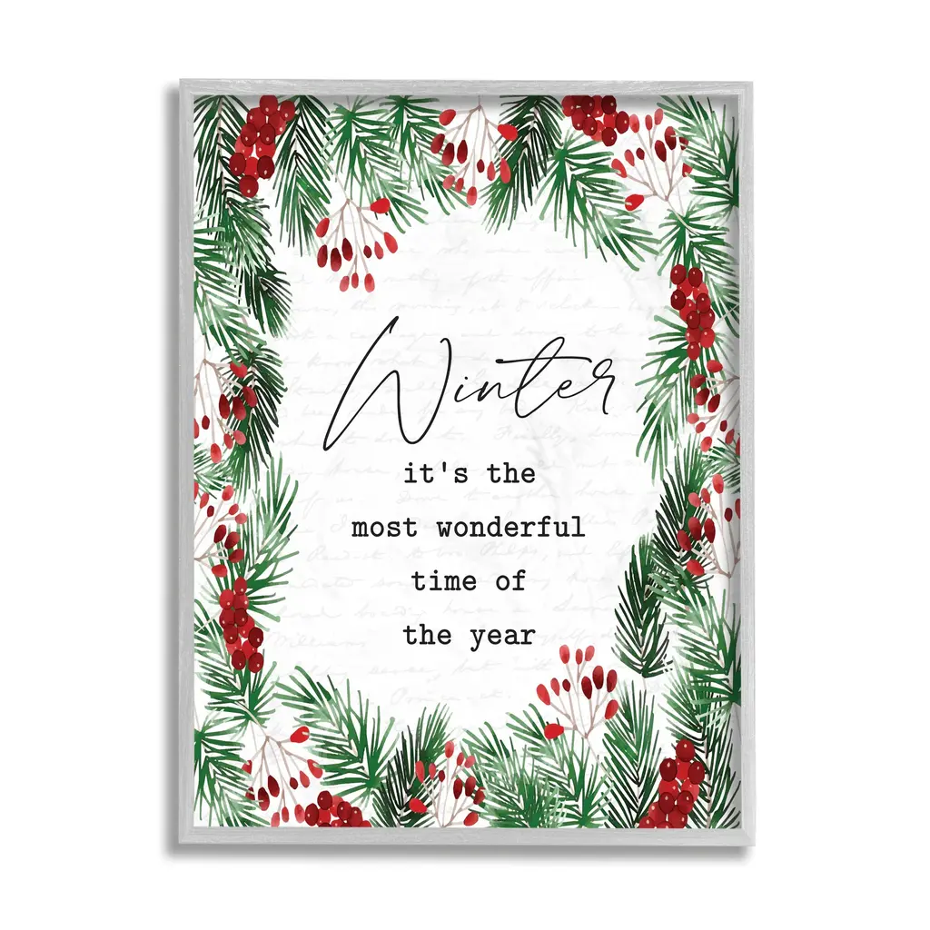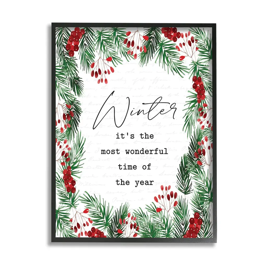 Stupell Most Wonderful Time Winter Phrase Festive Wreath Framed Wall Art - Multi-Color - 24 X 30 - Black