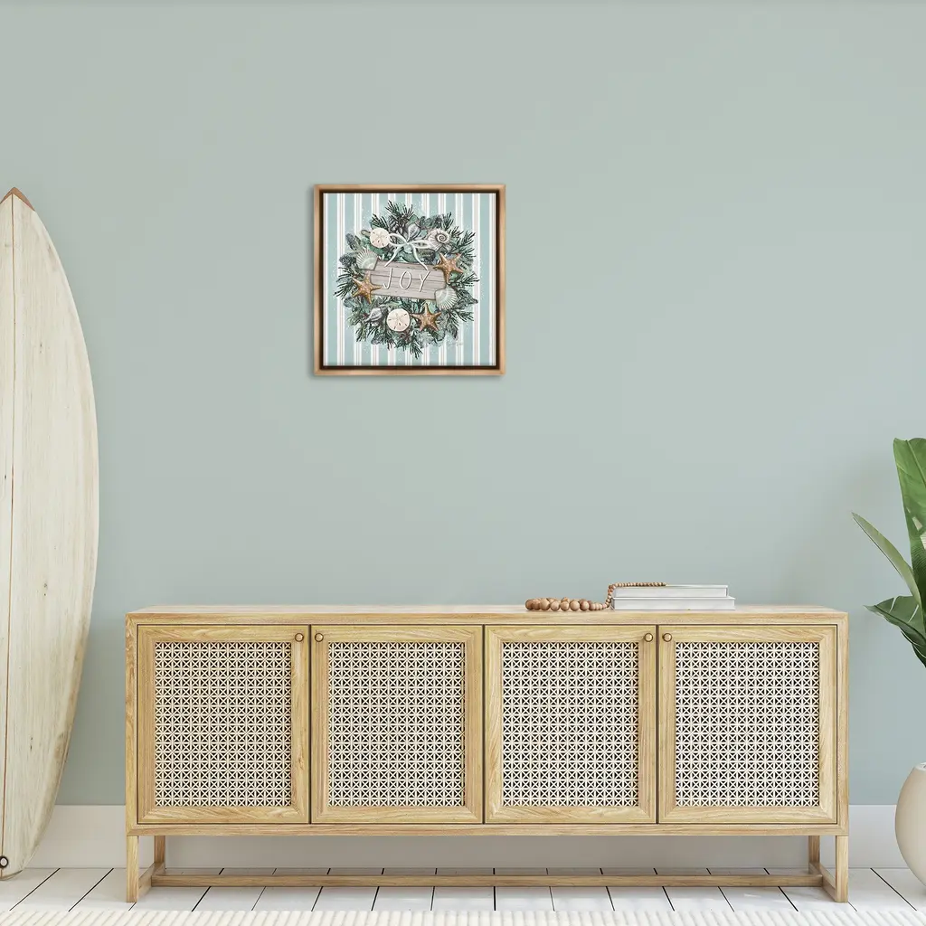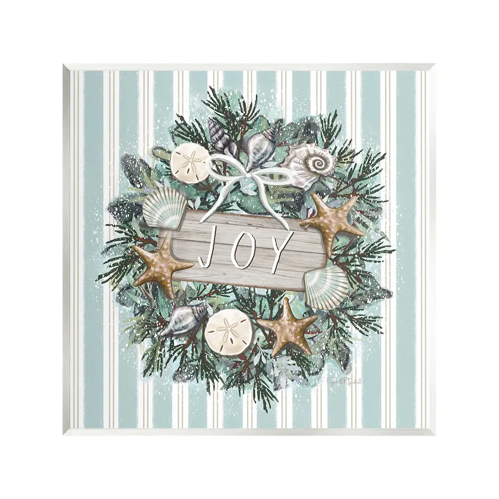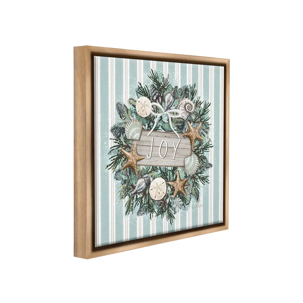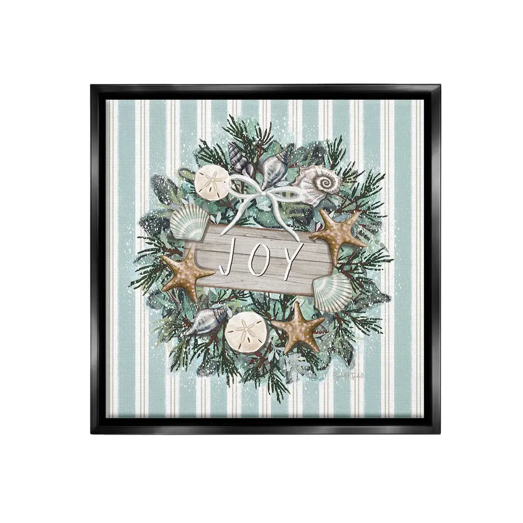 Elevate your home or office to the next level with Stupell Framed Floating Canvas Wall Art. Our premium hand-stretched canvas is mounted securely into a sturdy lightweight frame. The museum-style gap between the wrapped canvas and the box frame gives the illusion of floating artwork. Stupell Wall Art is made in the USA.Features: Dimensions: 18 x 1.7 x 18 Frame, 17 x 1.5 x 17 Canvas ArtFloating Frame Canvas Products are available in sizes 18"x18" and 25"x25". All Floating Frame Canvas Products have a 1.7" Depth.Wall Art is Ready to Hang with Hardware Free Hanging. No Installation required. For Easy Set Up Lean or Layer Artwork on Shelf or Against Wall. Artwork is Permently Fixed into the Frame.Our elevated 1.7" Thick Floating Frame is the perfect complement to our canvas style Wall Art. We use only the highest quality inks in house with industry leading printing solutions. Canvas is hand stretched over a durable wood foundation and then mounted securly into a Modern Box Frame. Made in the USA.Artwork Relates To: Plant, Christmas, Wreath, Seashell, Starfish, Nautical, Holiday, Christmas, Stripes, Pattern, JoyDesign by Elizabeth Tyndall
