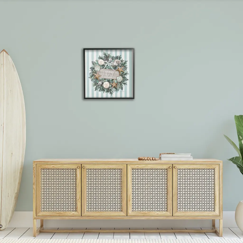 Add dimension to any room with our textured Framed Giclee Artwork. Our framed artwork is securely mounted into a 1.5-inch thick wood grain frame and ready to hang. Frames are available in three alluring styles: black, gray farmhouse and white. In addition, you should check out our oversized options if you want a statement piece. Stupell Wall Art is made in the USA.Features: Dimensions: 12 x 1.5 x 12 FramedFramed Giclee Product Sizes Include 12"x12", 17"x17", and 24"x24". Framed Giclee Products have a 1.5" Depth. Wall Art is Ready to Hang with Hardware Free Hanging. No installation required. For Easy Set Up Lean or Layer Artwork on Shelf or Against Wall.Our giclée prints are carefully mounted on a durable MDF backing, and then perfectly finished in a 1.5 inch thick woodgrain frame. Mounted frame colors include black, gray farmhouse and white. Made In USA.Artwork Relates To: Plant, Christmas, Wreath, Seashell, Starfish, Nautical, Holiday, Christmas, Stripes, Pattern, JoyDesign by Elizabeth Tyndall