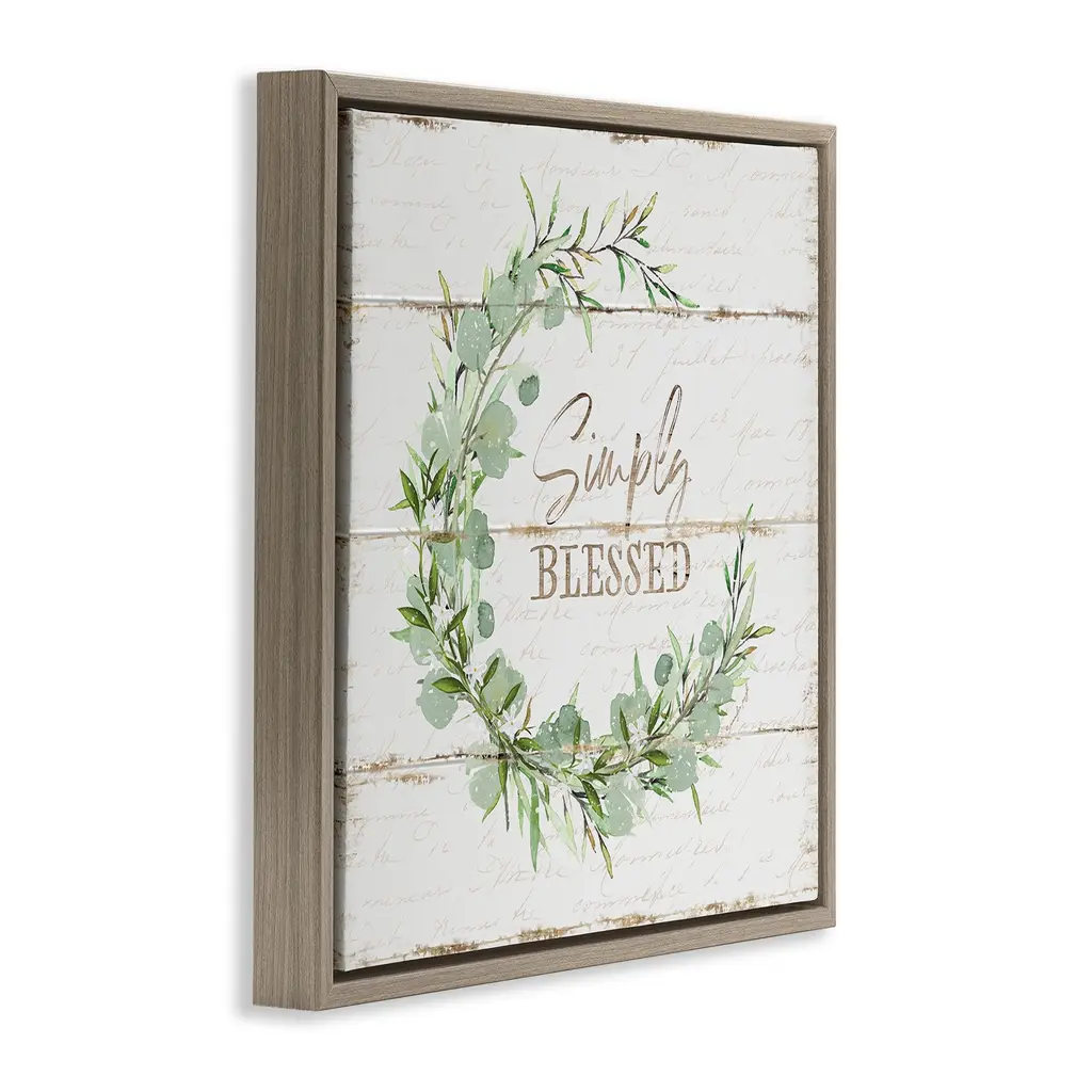 Elevate your home or office to the next level with Stupell Framed Floating Canvas Wall Art. Our premium hand-stretched canvas is mounted securely into a sturdy lightweight frame. The museum-style gap between the wrapped canvas and the box frame gives the illusion of floating artwork. Stupell Wall Art is made in the USA.Features: Dimensions: 18 x 1.7 x 18 Frame, 17 x 1.5 x 17 Canvas ArtFloating Frame Canvas Products are available in sizes 18"x18" and 25"x25". All Floating Frame Canvas Products have a 1.7" Depth.Wall Art is Ready to Hang with Hardware Free Hanging. No Installation required. For Easy Set Up Lean or Layer Artwork on Shelf or Against Wall. Artwork is Permently Fixed into the Frame.Our elevated 1.7" Thick Floating Frame is the perfect complement to our canvas style Wall Art. We use only the highest quality inks in house with industry leading printing solutions. Canvas is hand stretched over a durable wood foundation and then mounted securly into a Modern Box Frame. Made in the USA.Artwork Relates To: Phrase, Country, Wreath, Rustic, Herb, Faith, BlessedDesign by Jennifer Pugh