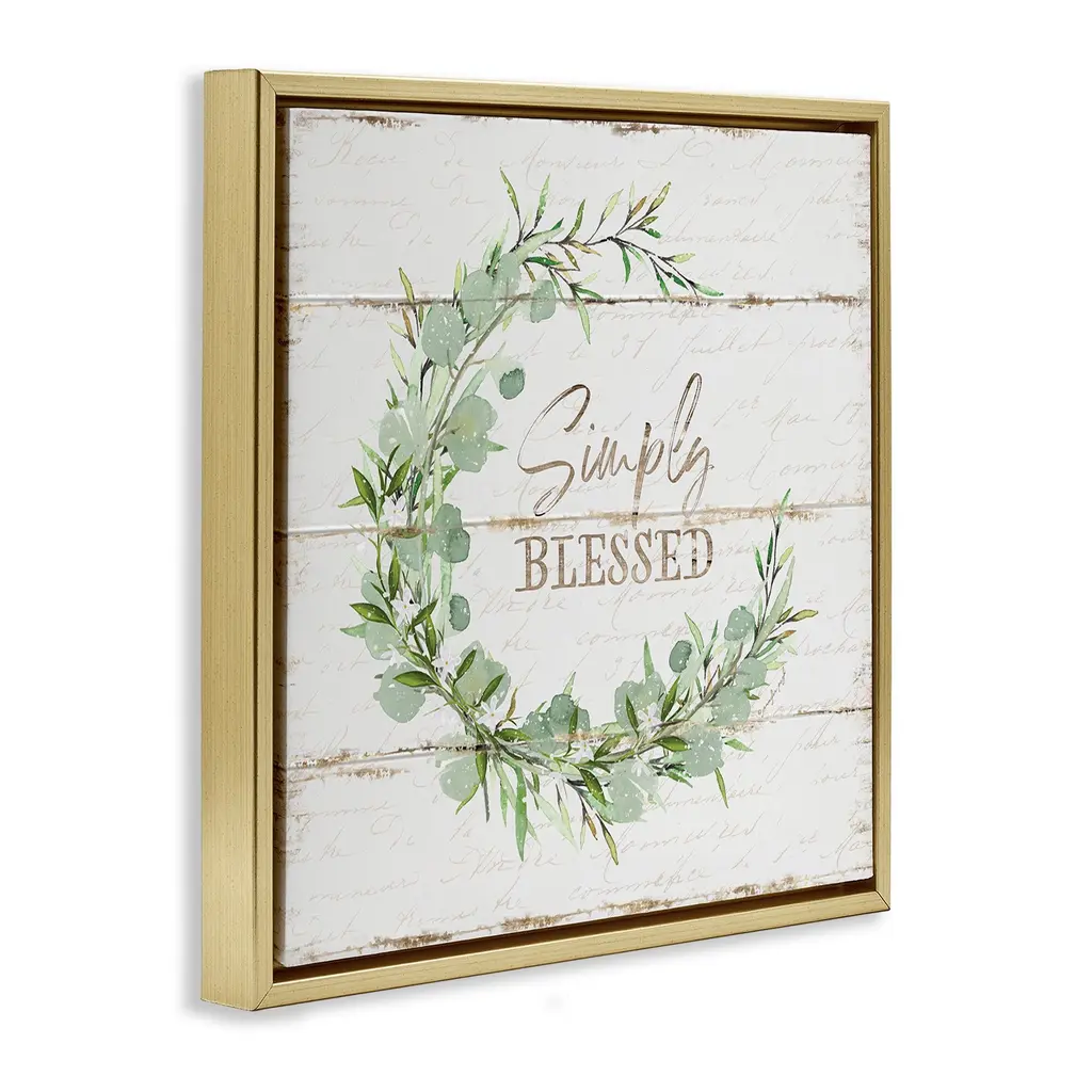 Elevate your home or office to the next level with Stupell Framed Floating Canvas Wall Art. Our premium hand-stretched canvas is mounted securely into a sturdy lightweight frame. The museum-style gap between the wrapped canvas and the box frame gives the illusion of floating artwork. Stupell Wall Art is made in the USA.Features: Dimensions: 18 x 1.7 x 18 Frame, 17 x 1.5 x 17 Canvas ArtFloating Frame Canvas Products are available in sizes 18"x18" and 25"x25". All Floating Frame Canvas Products have a 1.7" Depth.Wall Art is Ready to Hang with Hardware Free Hanging. No Installation required. For Easy Set Up Lean or Layer Artwork on Shelf or Against Wall. Artwork is Permently Fixed into the Frame.Our elevated 1.7" Thick Floating Frame is the perfect complement to our canvas style Wall Art. We use only the highest quality inks in house with industry leading printing solutions. Canvas is hand stretched over a durable wood foundation and then mounted securly into a Modern Box Frame. Made in the USA.Artwork Relates To: Phrase, Country, Wreath, Rustic, Herb, Faith, BlessedDesign by Jennifer Pugh