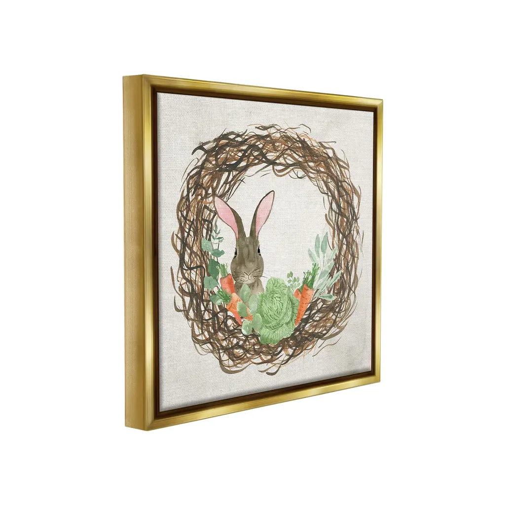 Elevate your home or office to the next level with Stupell Framed Floating Canvas Wall Art. Our premium hand-stretched canvas is mounted securely into a sturdy lightweight frame. The museum-style gap between the wrapped canvas and the box frame gives the illusion of floating artwork. Stupell Wall Art is made in the USA.Features: Dimensions: 18 x 1.7 x 18 Frame, 17 x 1.5 x 17 Canvas ArtFloating Frame Canvas Products are available in sizes 18"x18" and 25"x25". All Floating Frame Canvas Products have a 1.7" Depth.Wall Art is Ready to Hang with Hardware Free Hanging. No Installation required. For Easy Set Up Lean or Layer Artwork on Shelf or Against Wall. Artwork is Permently Fixed into the Frame.Our elevated 1.7" Thick Floating Frame is the perfect complement to our canvas style Wall Art. We use only the highest quality inks in house with industry leading printing solutions. Canvas is hand stretched over a durable wood foundation and then mounted securly into a Modern Box Frame. Made in the USA.Artwork Relates To: Animal, Mammal, Rabbit, Bunny, Hare, Wreath, Easter, Spring, Nature, Vegetables, CarrotDesign by Lucille Price