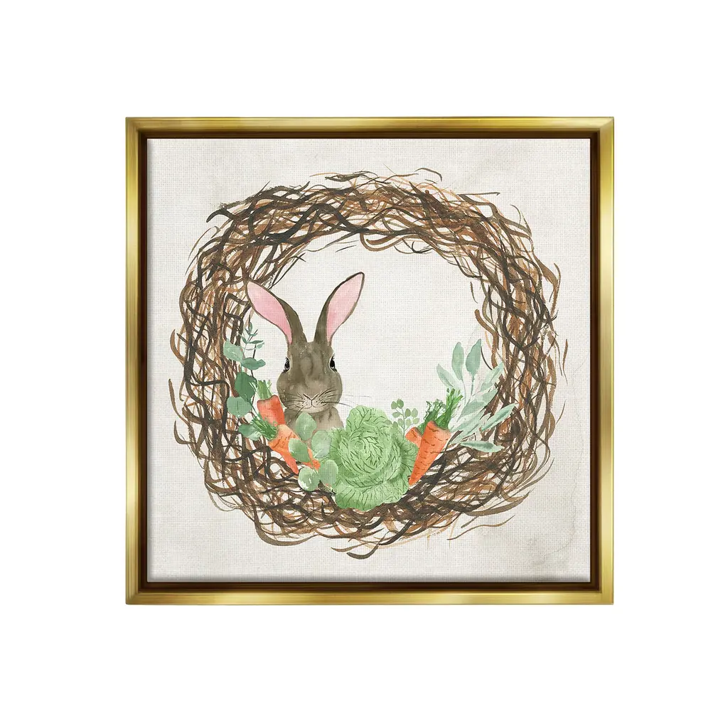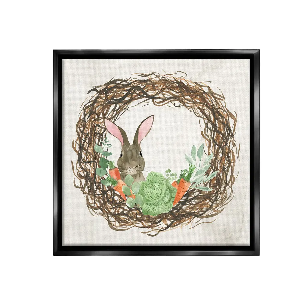 Our wall plaques start as high-quality lithograph prints mounted on durable 0.5-inch thick MDF wood. Each piece is hand finished and comes with a fresh layer of white foil on the sides to give it a crisp, clean look. Plaques arrive ready to hang without installation and come with removable plastic corners to keep them from damage in transit. Stupell Wall Art is made in the USA.Features: Dimensions: 12 x 0.5 x 12 InchesWall Art is Ready to Hang with Hardware Free Hanging. No installation required. For Easy Set Up Lean or Layer Artwork on Shelf or Against Wall.All of our wall plaques start off as high quality lithograph prints that are then mounted on durable 0.5 inch thick MDF wood. Each piece is hand finished and comes with a fresh layer of foil on the sides to give it a crisp clean look. Made In USA.Artwork Relates To: Animal, Mammal, Rabbit, Bunny, Hare, Wreath, Easter, Spring, Nature, Vegetables, CarrotDesign by Lucille Price