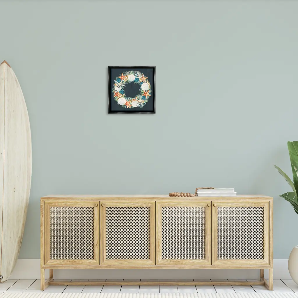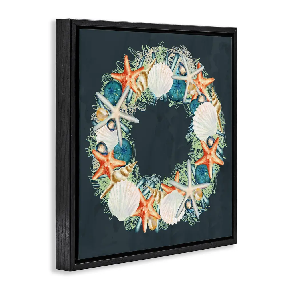 Elevate your home or office to the next level with Stupell Framed Floating Canvas Wall Art. Our premium hand-stretched canvas is mounted securely into a sturdy lightweight frame. The museum-style gap between the wrapped canvas and the box frame gives the illusion of floating artwork. Stupell Wall Art is made in the USA.Features: Dimensions: 18 x 1.7 x 18 Frame, 17 x 1.5 x 17 Canvas ArtFloating Frame Canvas Products are available in sizes 18"x18" and 25"x25". All Floating Frame Canvas Products have a 1.7" Depth.Wall Art is Ready to Hang with Hardware Free Hanging. No Installation required. For Easy Set Up Lean or Layer Artwork on Shelf or Against Wall. Artwork is Permently Fixed into the Frame.Our elevated 1.7" Thick Floating Frame is the perfect complement to our canvas style Wall Art. We use only the highest quality inks in house with industry leading printing solutions. Canvas is hand stretched over a durable wood foundation and then mounted securly into a Modern Box Frame. Made in the USA.Artwork Relates To: Holiday, Christmas, Nautical, Wreath, Seashells, Starfish, Sea LifeDesign by Ziwei Li