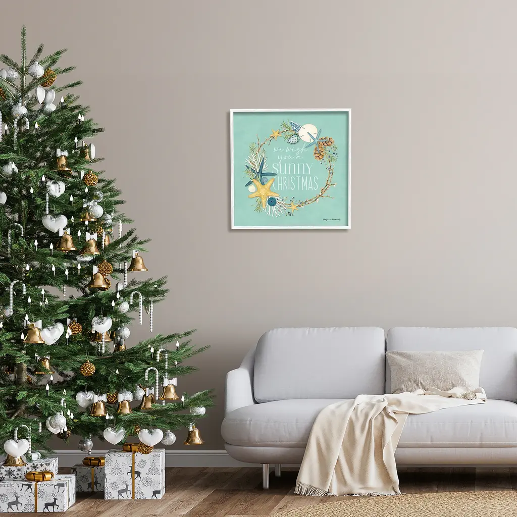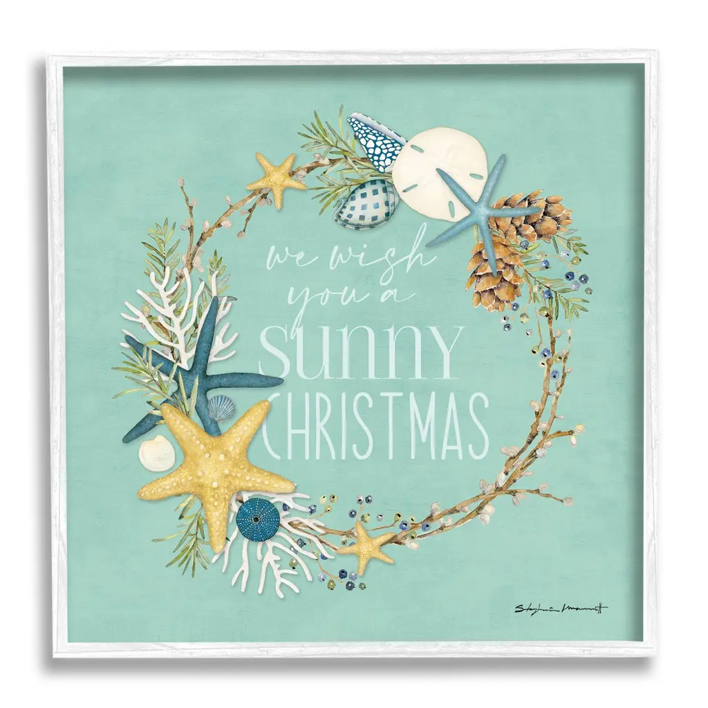 Add dimension to any room with our textured Framed Giclee Artwork. Our framed artwork is securely mounted into a 1.5-inch thick wood grain frame and ready to hang. Frames are available in three alluring styles: black, gray farmhouse and white. In addition, you should check out our oversized options if you want a statement piece. Stupell Wall Art is made in the USA.Features: Dimensions: 12 x 1.5 x 12 FramedFramed Giclee Sizes Include Standard: 12 x 1.5 x 12 Large: 17 x 1.5 x 17 Oversized: 24 x 1.5 x 24Wall Art is Ready to Hang - No Installation or Hardware Needed. For Easy Set Up Lean or Layer Artwork on Shelf or Against Wall.Our giclée prints are carefully mounted on a durable MDF backing, and then perfectly finished in a 1.5 inch thick woodgrain frame. Mounted frame colors include black, gray farmhouse and white. Made In USA.Artwork Relates To: Plant, Animal, Sea Life, Christmas, Holiday, Starfish, Coral, Wreath, Beach, Nautical, We Wish You A Sunny ChristmasDesign by Stephanie Workman Marrott