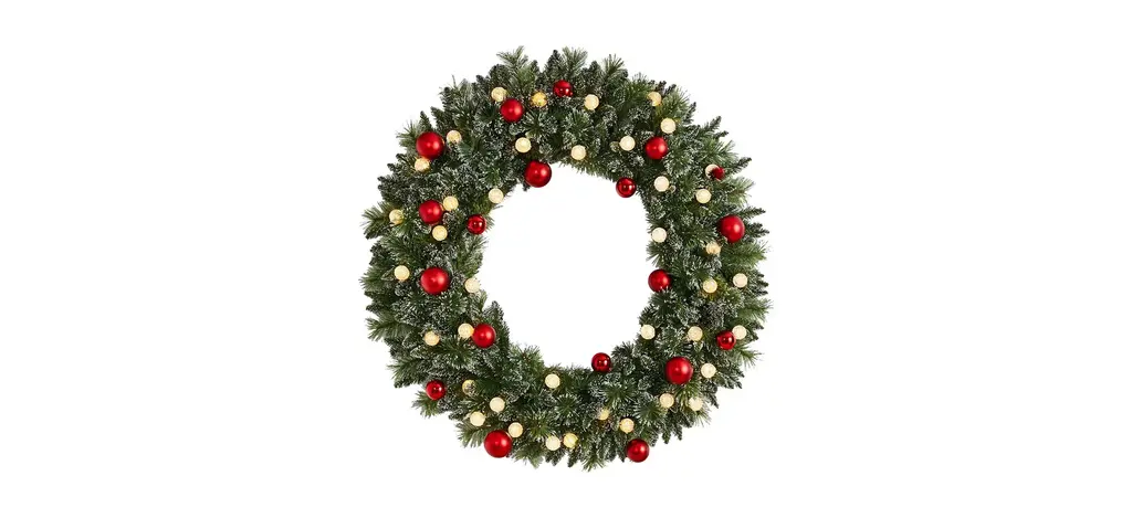 The Holiday Aisle® Decorative Collection Christmas Red Mixed Wreath With Battery Operated Lights