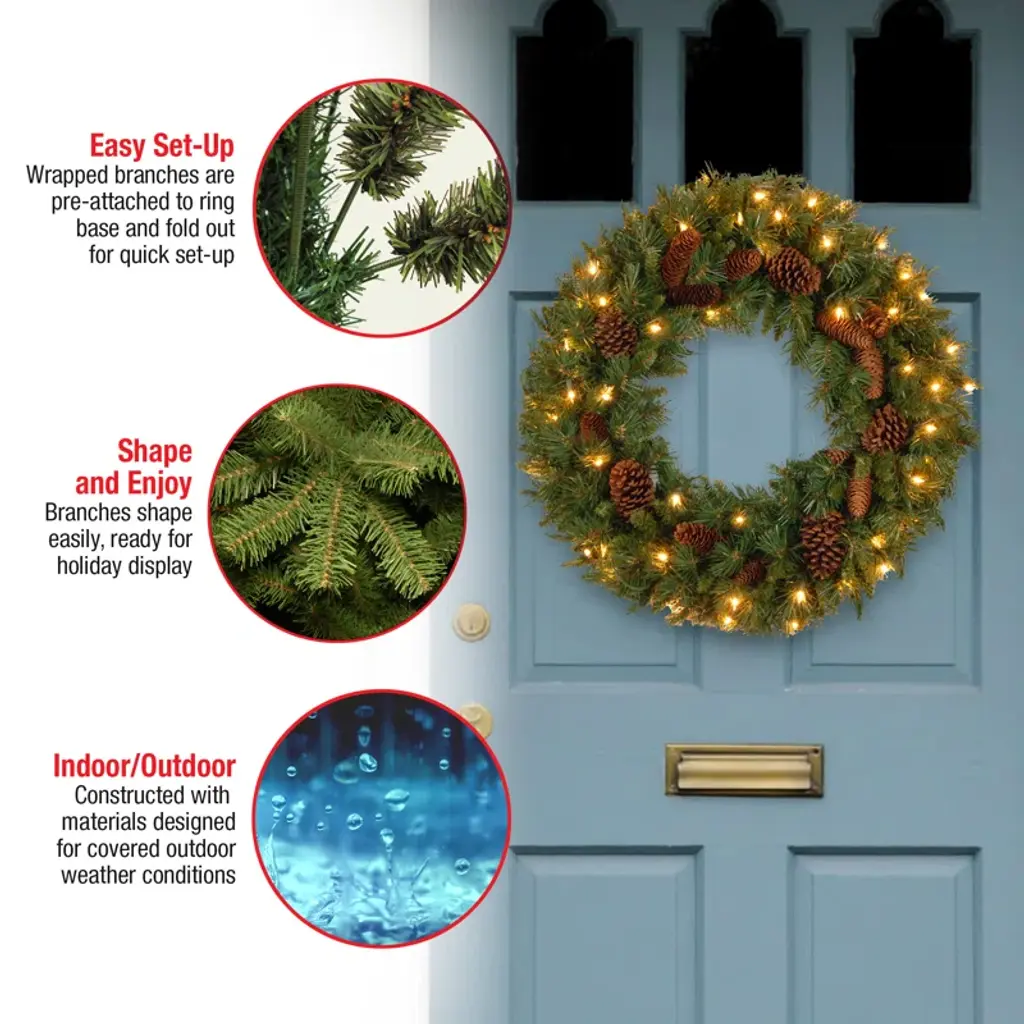 Welcome the festive season with this delightful pre-lit wreath, designed to bring warmth and cheer to your home. Crafted by the National Tree Company, this circle-shaped wreath is adorned with incandescent stay-lit bulbs, ensuring a bright and welcoming atmosphere both indoors and outdoors. Made from polyvinyl chloride (PVC), it features bendable and fused stems that allow for easy customization. Handcrafted to ensure quality, this wreath is a must-have for holiday celebrations. Just remember to store it in a cool, dry location away from sunlight when not in use.