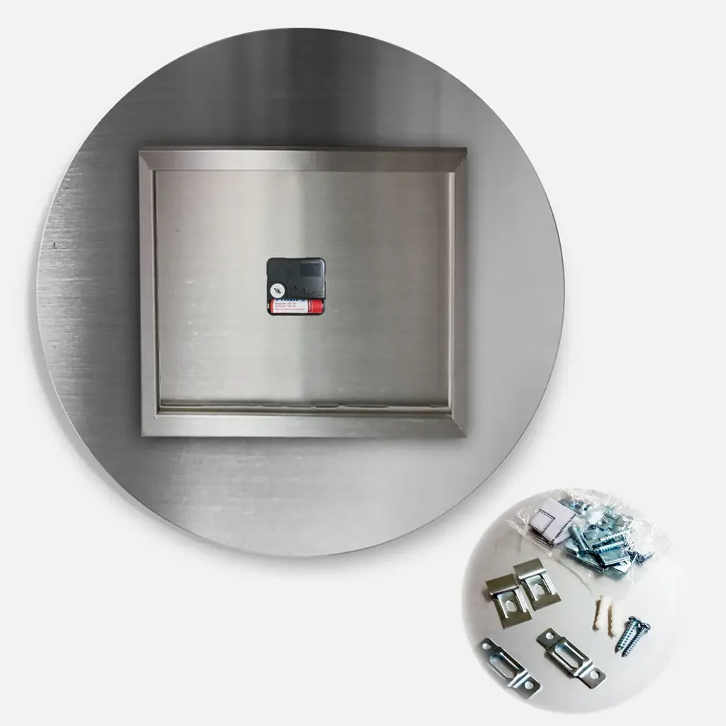 A beautiful addition to any home or office, this Vintage round wall clock is made on 100% solid aluminum. It has a highly reflective glossy finish creating a sleek modern look. This Time is Love Vintage Flower Wreath wall clock arrives completely ready to hang on the wall. Simply insert the �AAA� battery included with your order.Available in several size, this Modern Oversized Clock makes it the focal point of any room.Features - Ultra Gloss Coating ensures colors are extra vibrant with light reflection. - 1mm Aluminum grade sheet metal. - 1-inch mounting frame gives the illusion of artwork floating on the wall. - Mounting brackets and instructions are included. - High quality digital images are created directly into a glossy aluminum panel, producing a stunning and captivating print in the glossy finish of the metal. - Looks better than any photo paper and guaranteed to last at least 20 years. - Easy to clean with a microfiber cloth. - "AAA" battery included with your order. - Easy to hang. - Style: Traditional - Material: Metal - Shape: RoundSee Options drop down for available sizes.