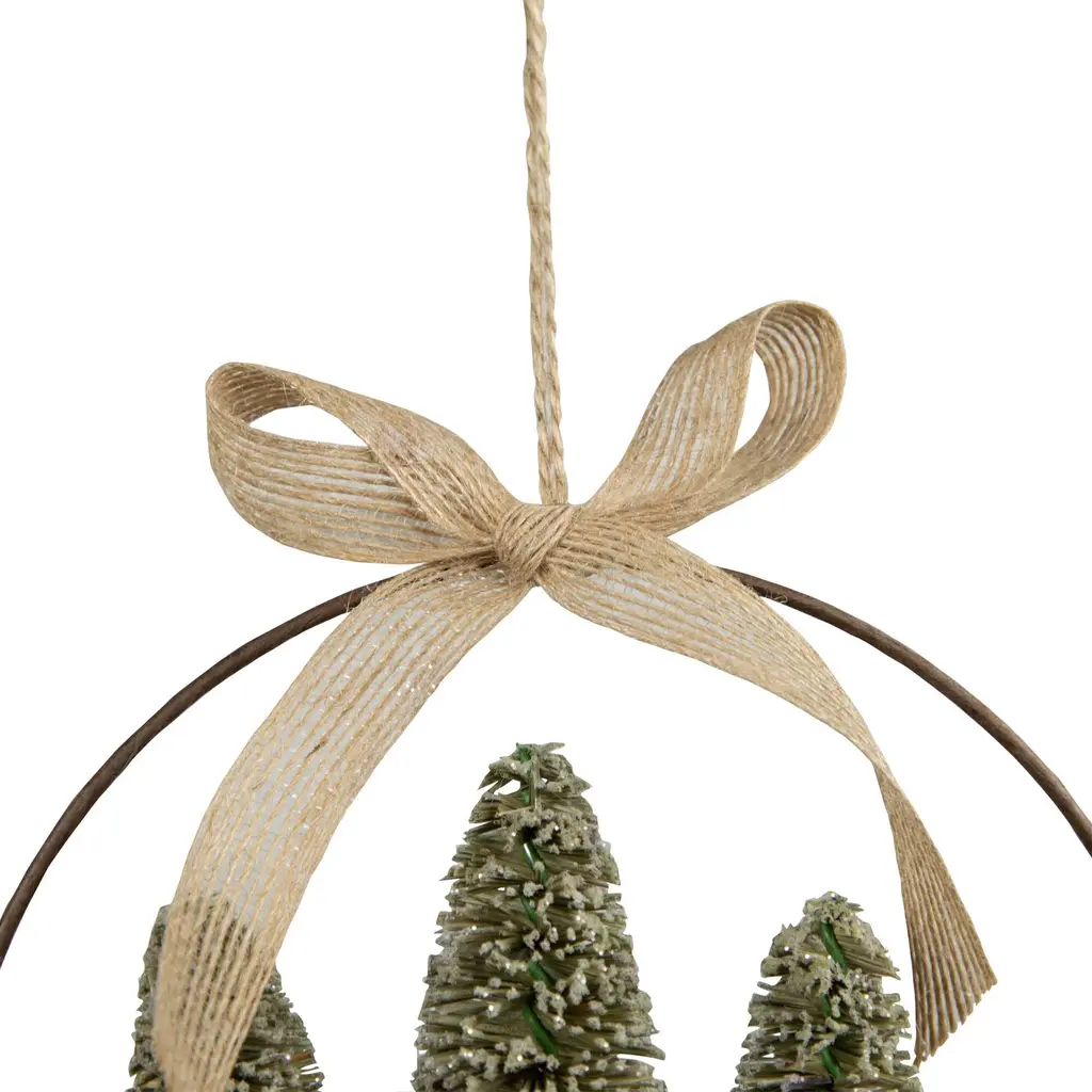 Transpac Burlap Ribbon Wreath Ornament Set Of 3 Christmas Home Decorations - Multi