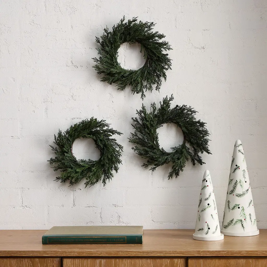 Transpac Lambs Ear Wreath W/bright Bow Set Of 3 Christmas Home Decorations - Multi