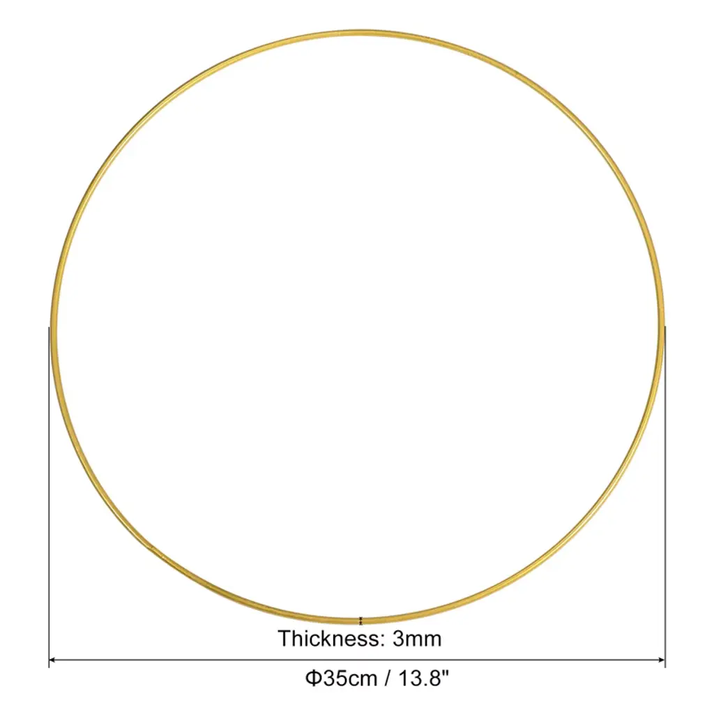 Metal Brass Plated Floral Hoop, for DIY Craft Dream Catcher, Lace Rope, Wedding Decor and Wall Hanging Craft. By wrapping colored or lace or suede ropes around the garland to change the exterior color, therefore it can match different decoration. Specification Color: Gold Tone Material: Metal Packing List: 2 x Round Floral Hoops Advantage Metal material, smooth to the touch, no rust or fading. The ring joints are firmly welded, not easily broken or deformed. for many materials, such as lace covering fabrics, cotton threads, ribbons, curtain loops. Instruction The metal hoops can be used for lace on fabric, cotton thread, ribbon, curtain loops, framing your handmade projects and display as artwork, home decor items. NOTE: Please check the diameter of the wreath you need before buying.