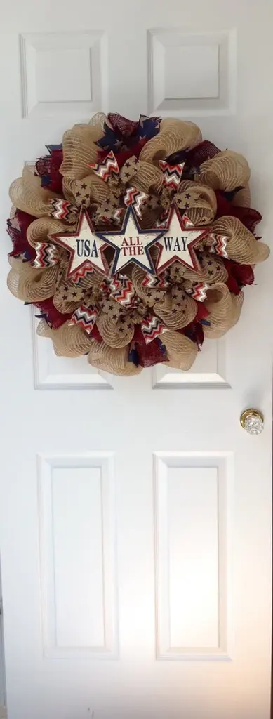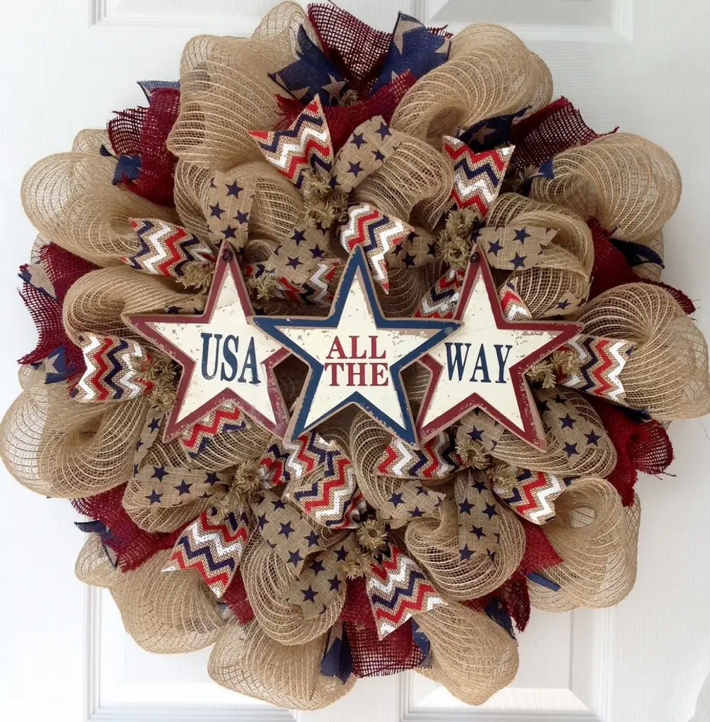 Usa All The Way Patriotic Burlap Wreath Handmade Deco Mesh