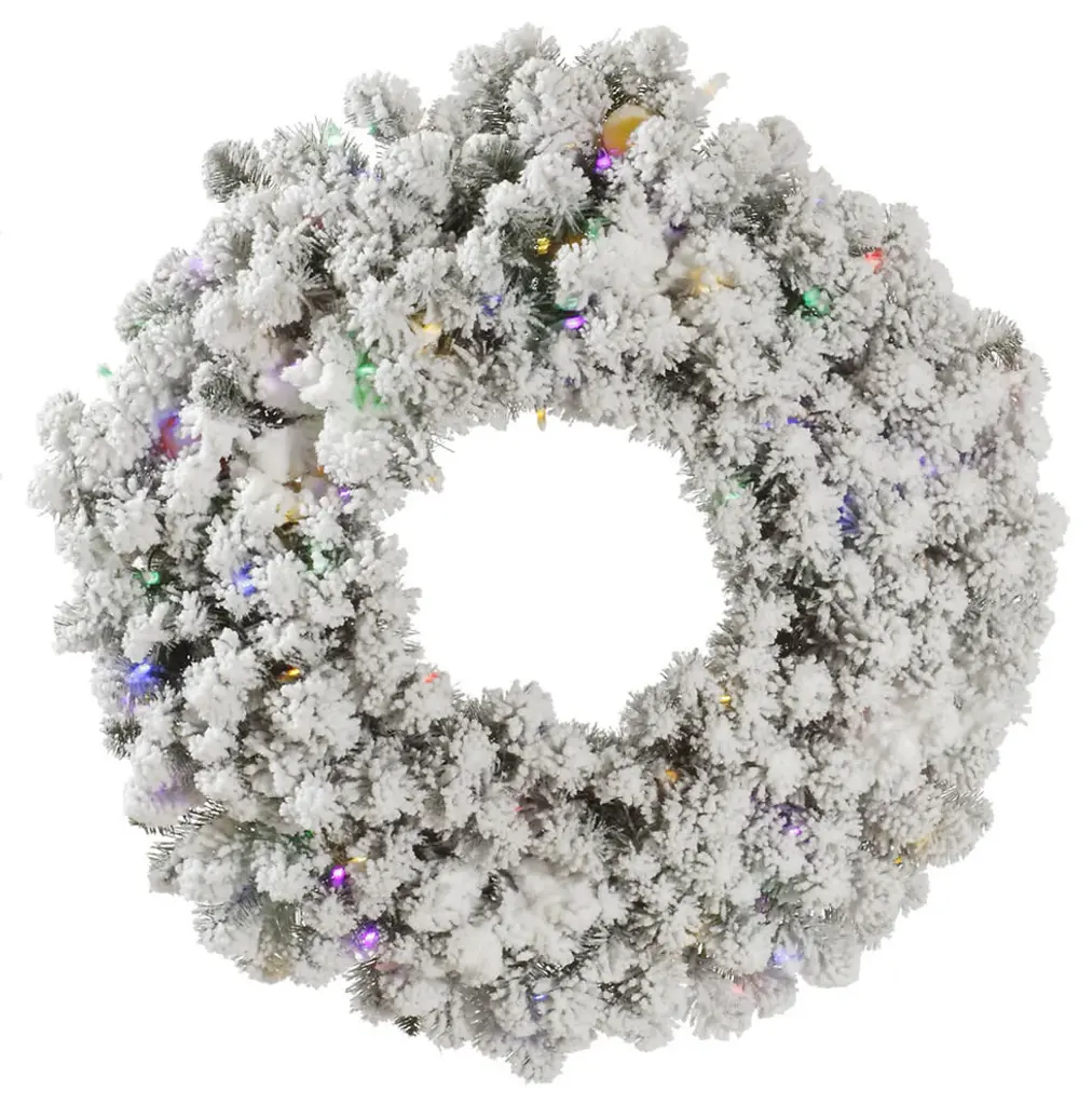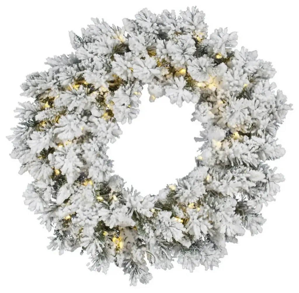 Vickerman A155331led Flocked Alberta Artificial Christmas Wreath White Lights