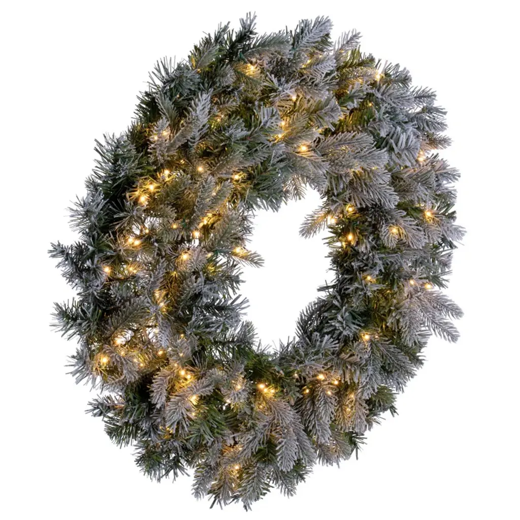 Vickerman Frosted Douglas Fir Artificial Pre-Lit Wreath, Warm White 3Mm Led Wide Angle Lights
