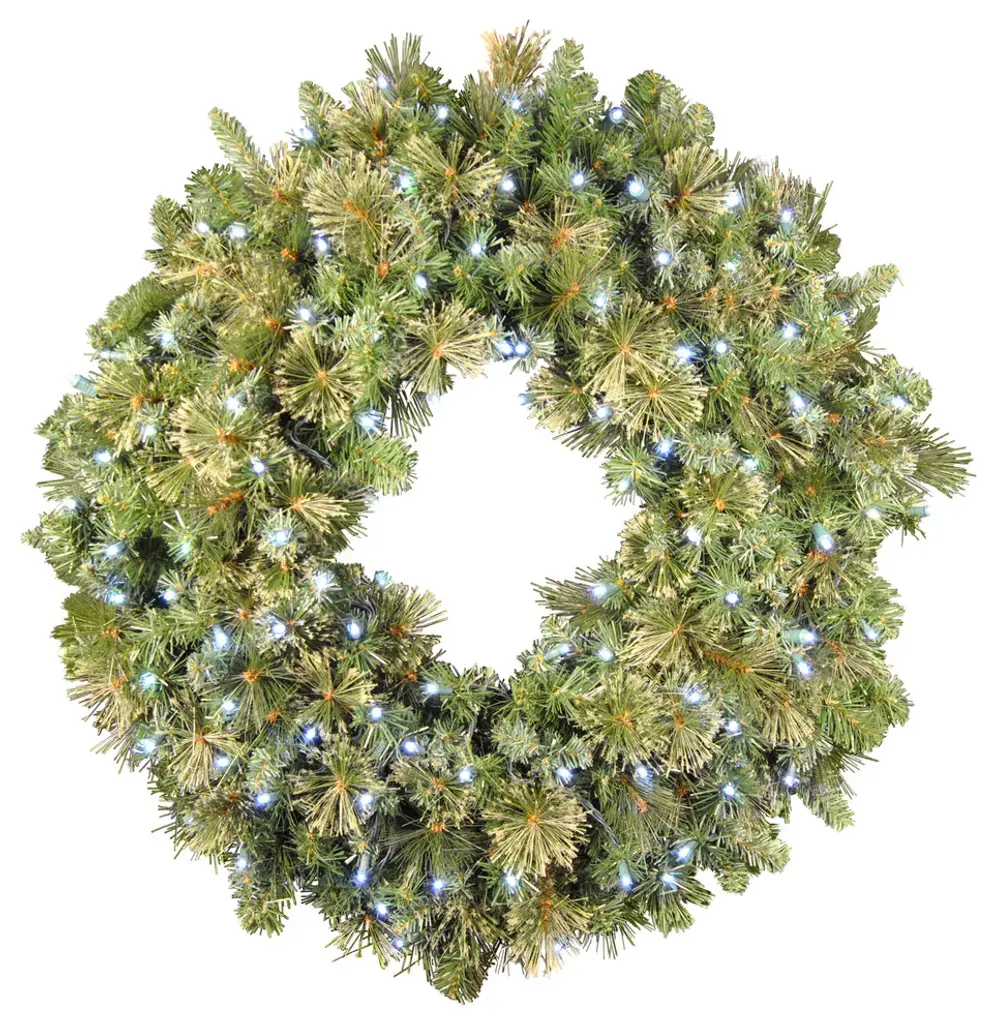 Vickerman 30" Silver Fir Artificial Christmas Wreath with 260 PVC Tips. Incorporate bright and modern holiday d�cor into your space with this beautiful wreath. A great accent for your front door or mantle, this wreath comes Unlit, features traditional PVC tips, giving a lush, full look, and can be customized with your favorite lights, ornaments, ribbons, or Holiday picks. The wreath measures 30" across the diameter from the end of one tip to another