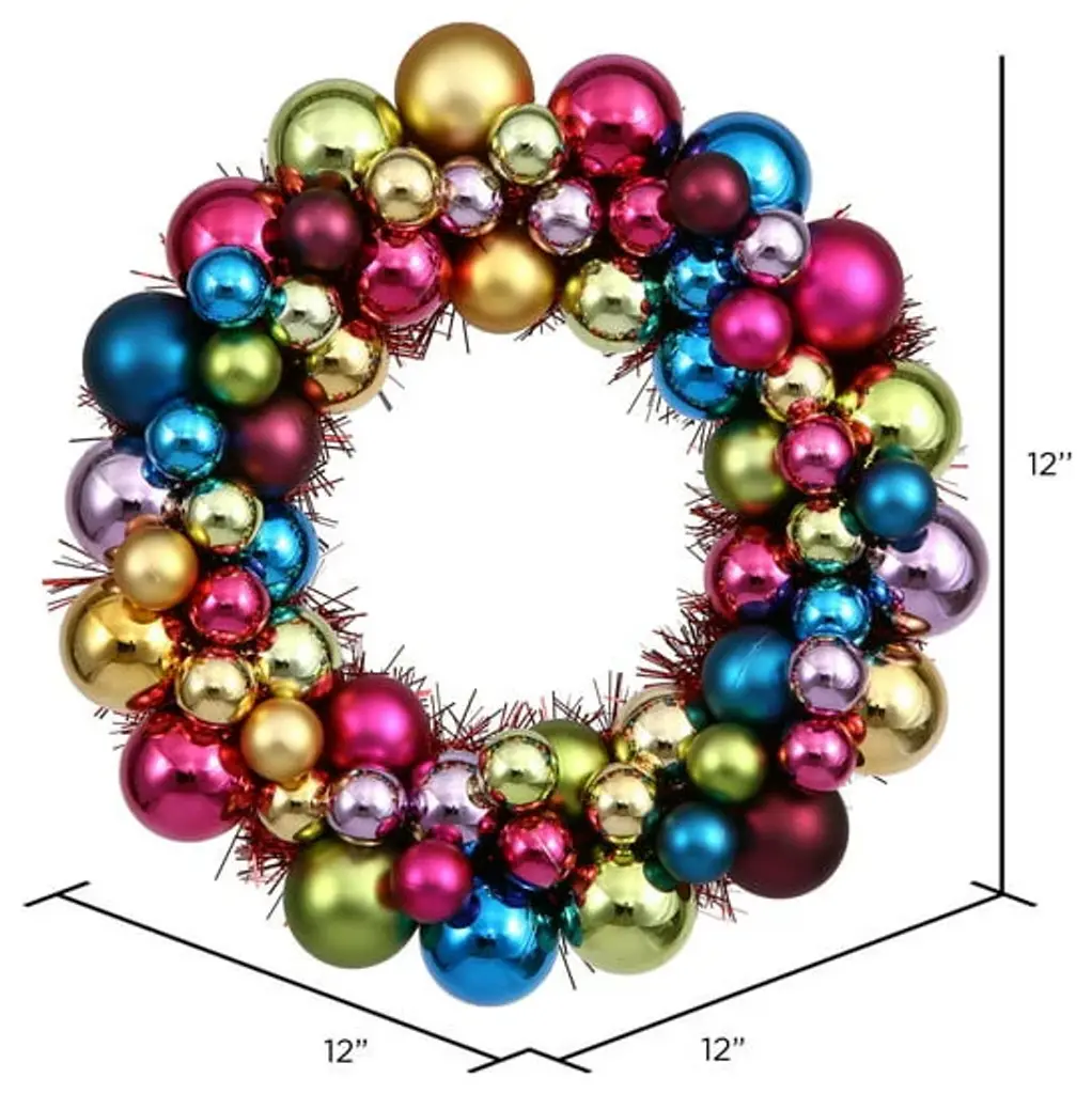 Vickerman N114200 12" Multi-Colored Shiny And Matte Ball Wreath