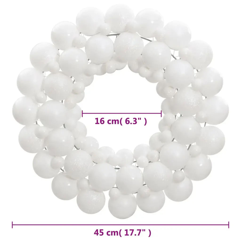 This Christmas wreath is all about the festive vibe with its lush design and great looks. Made from high-quality polystyrene, it's built to create a lasting impression, whether hung on a door, in the living room, or as part of your party decorations. Shatterproof Construction: Great for holiday decor, this wreath is made from strong materials that won’t break, making it safe for homes with kids and pets.Versatile Usage: Use it indoors or outdoors; perfect for sprucing up doorways, walls, or window displays, keeping your festive cheer alive wherever it goes.Elegant Color Palette: The bright white shade adds a clean and vibrant touch to any festive decor, making it a stylish pick for every Christmas celebration.Traditional Aesthetic: With its classic circular shape and decorative designs, the wreath fits a range of interior styles from traditional to modern, giving your home decor a touch of elegance.Easy Care Instructions: Keeping it nice is a breeze since it can be wiped clean with a damp cloth, so you can enjoy its beauty worry-free.