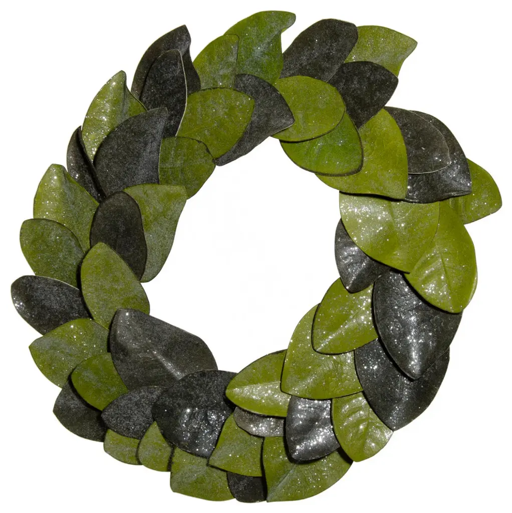 Vintage Glitter Magnolia Leaves Wreath, 16"