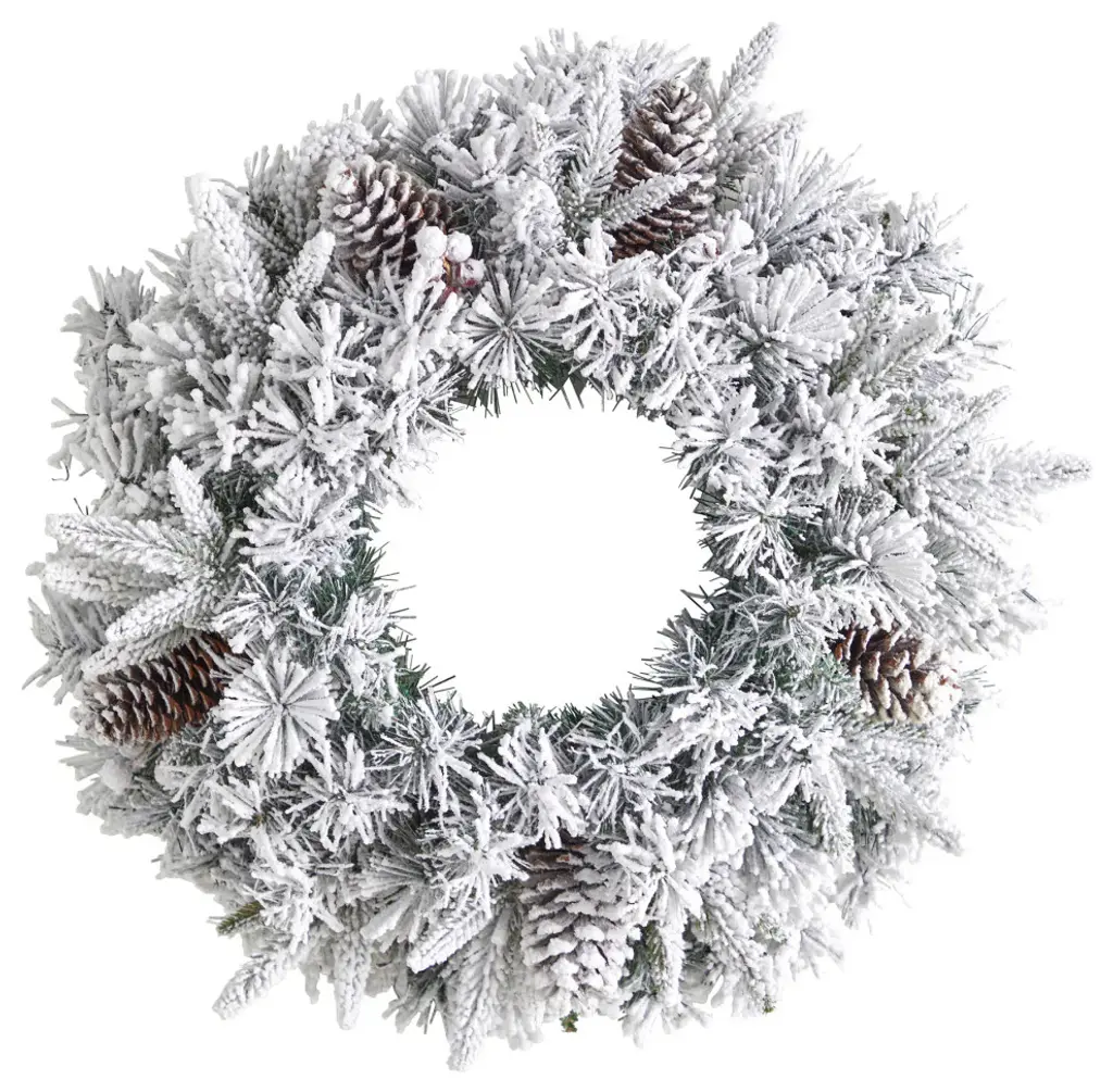 W1304 20 Flocked Artificial Christmas Wreath With 35 Warm White Led Lights