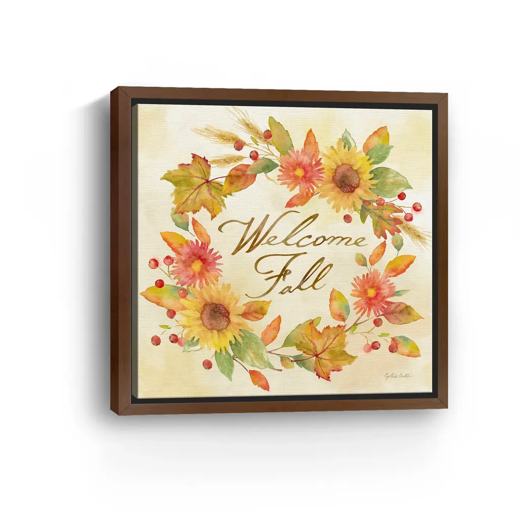Welcome Fall - Wreath Canvas Giclee - Framed / Black / 30x30