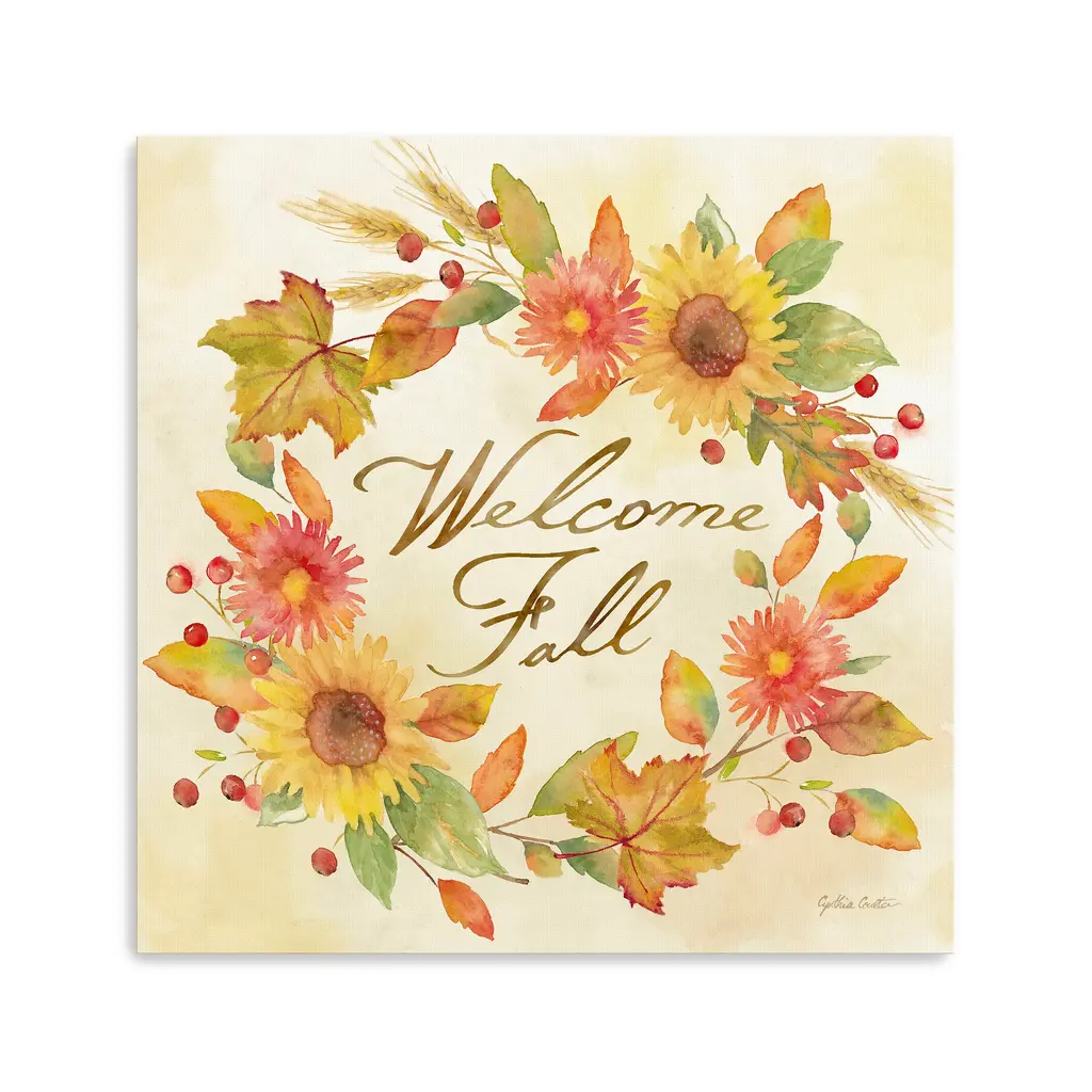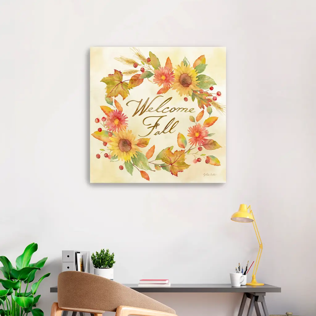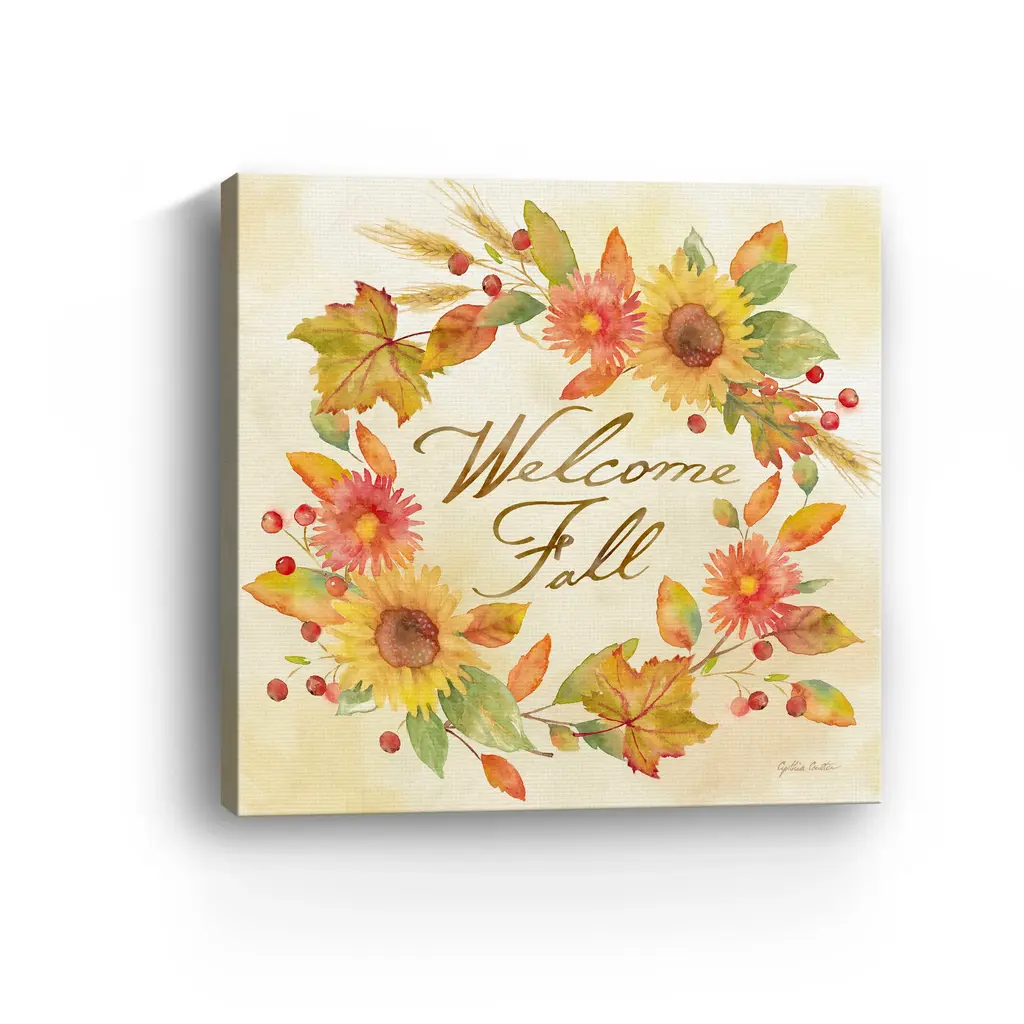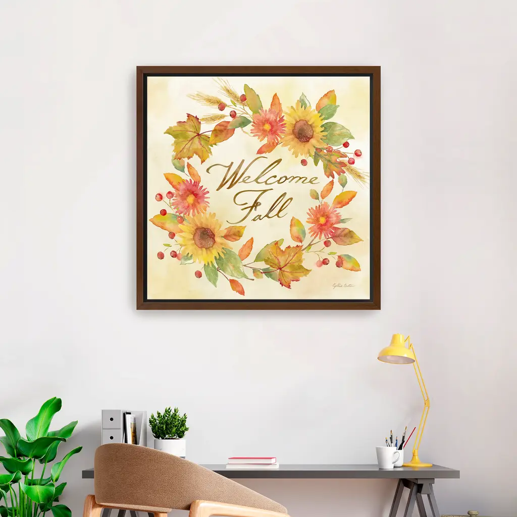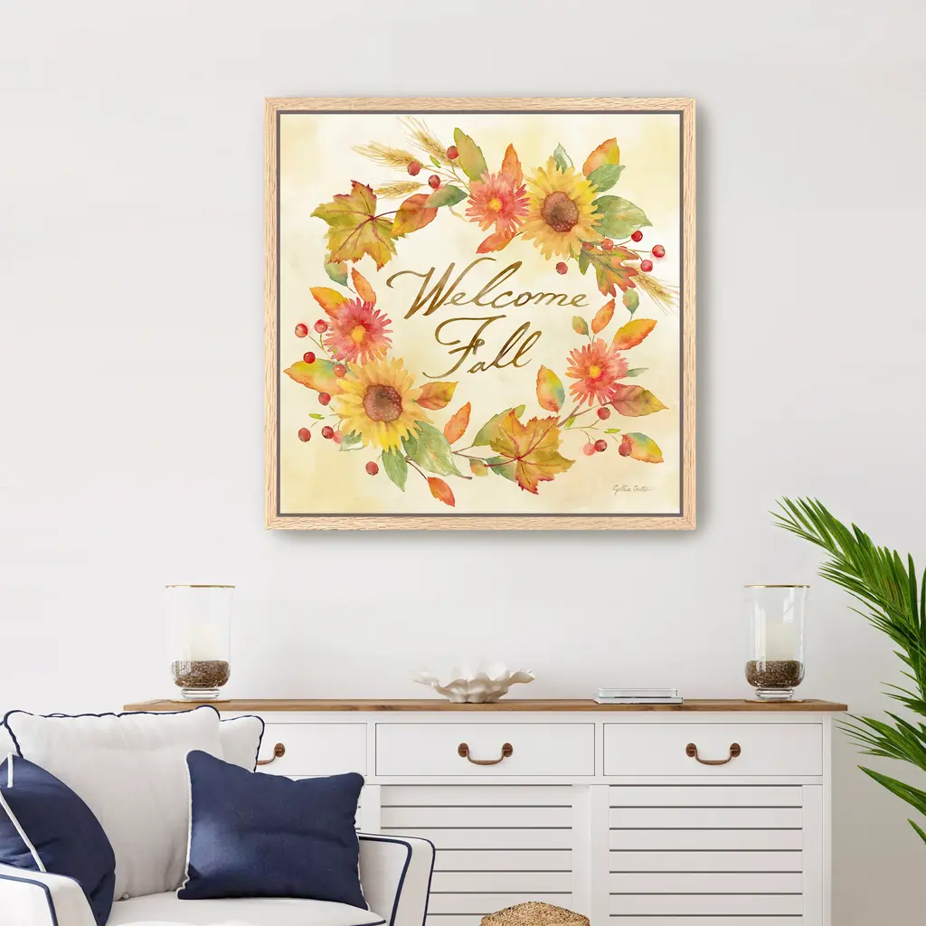 Welcome Fall - Wreath Canvas Giclee - Framed / Oak / 20x20