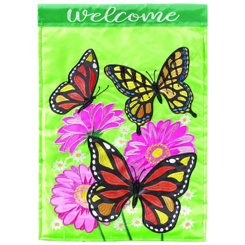 This Welcome Wreath Applique House Flag adds an extra touch to any garden or outdoor space. Each Evergreen Flag Applique flag is carefully crafted from multiple layers of 310 denier nylon that can withstand a variety of weather conditions.