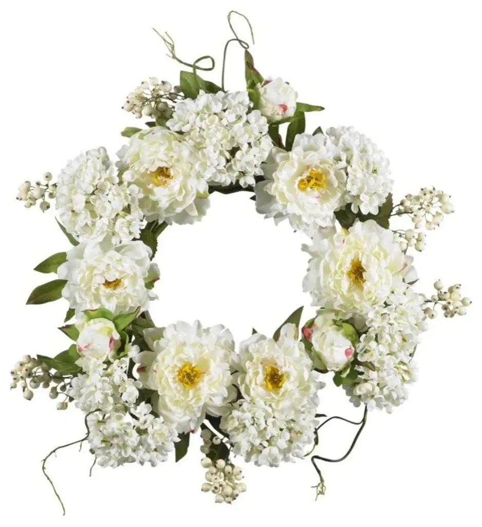 White Magnolias Artificial Spring Wreath, 24" Unlit