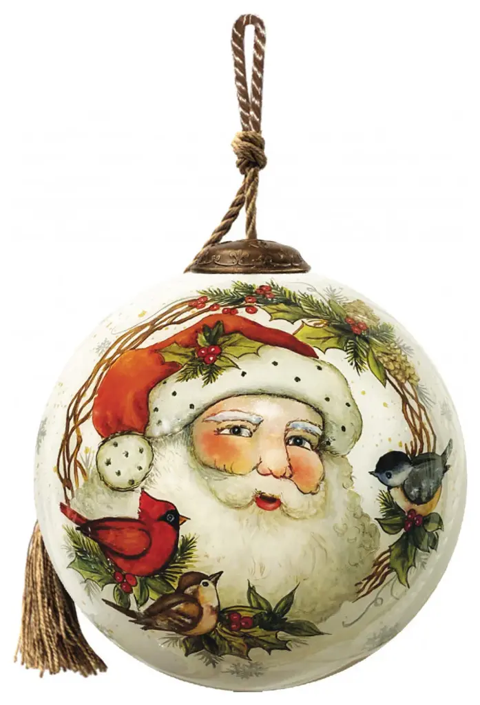 Winter Wreath Forest Santa Hand Painted Mouth Blown Glass Ornament