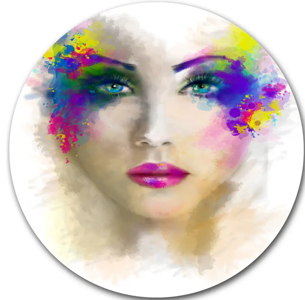 Bring Contemporary Abstraction to your home with this large Circle Metal wall art. This Woman with Wreath Metal Artwork makes it the focal point of any room or office. - White Gloss Coating ensures colors are extra vibrant with light reflection.- Aluminum grade Sheet Metal with 1 inch mounting frame on the back giving the illusion that the artwork is floating on the wall..- Mounting Brackets are included along with instructions.- High Quality Digital images are created directly into a glossy aluminum panel producing a stunning and captivating print into the glossy finish of the metal.- Water, Fire and Scratch resistant HD Aluminum panels.- Looks better than any photo paper and guaranteed to last at least 20 years- Easy to clean with a microfiber cloth. Colors are far superior to regular Canvas Art. - Easy to Hang