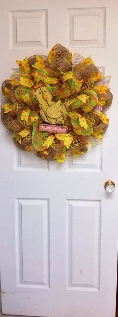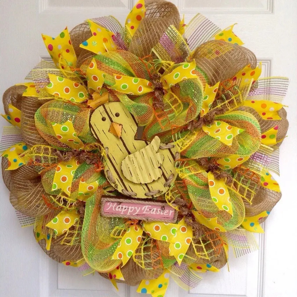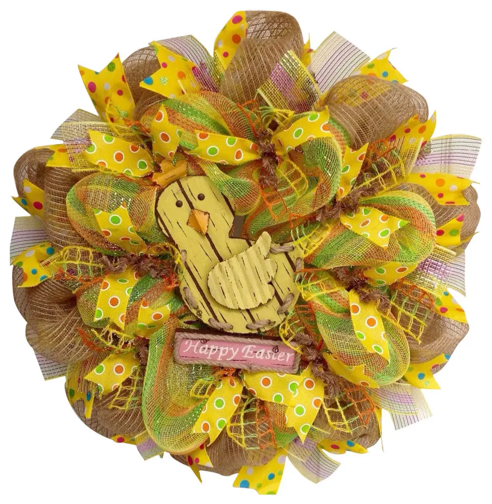 Wooden Chick With Easter Sign Deco Mesh Wreath