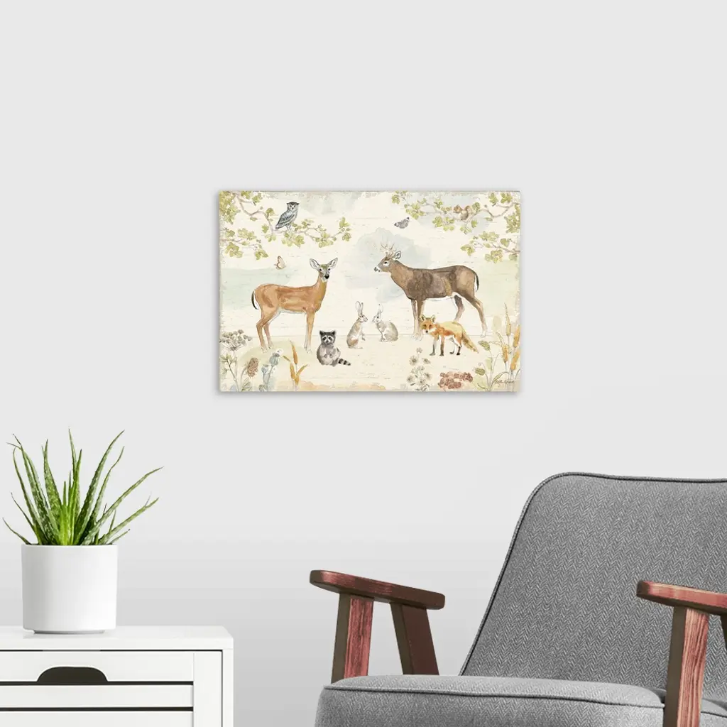 Woodland Wreath I wall art for home and office decor. Discover canvas art prints, photos, mural, big canvas art and framed wall art in GreatBigCanvas.com's varied collections.