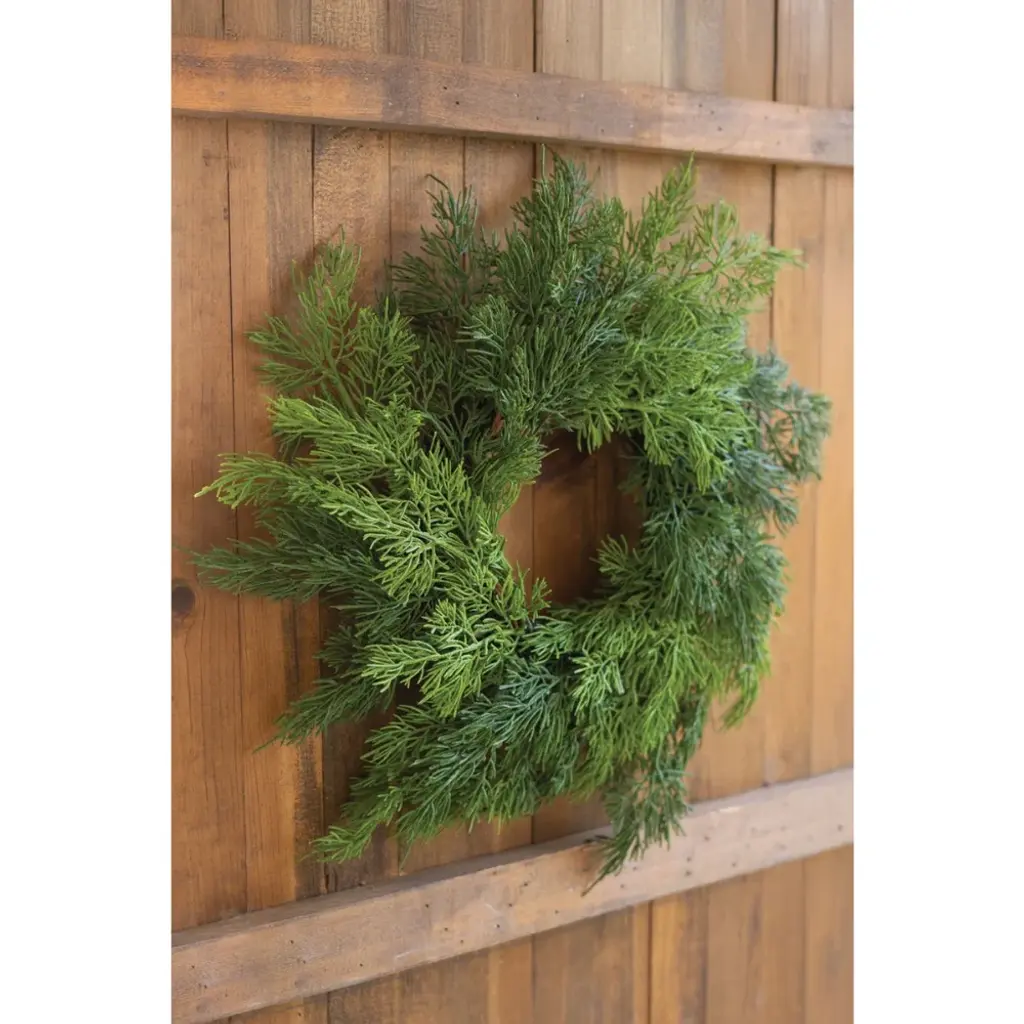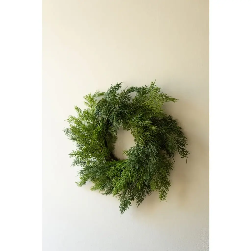 Winter decor adds warmth to a home. This artificial cedar pine wreath can be placed on a door or window. Add complimenting enhancements creating your own unique look. Maybe on a coffee table with a center candle?