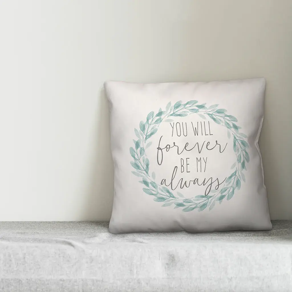 You Will Forever Be My Always Watercolor Wreath Throw Pillow, 16x16