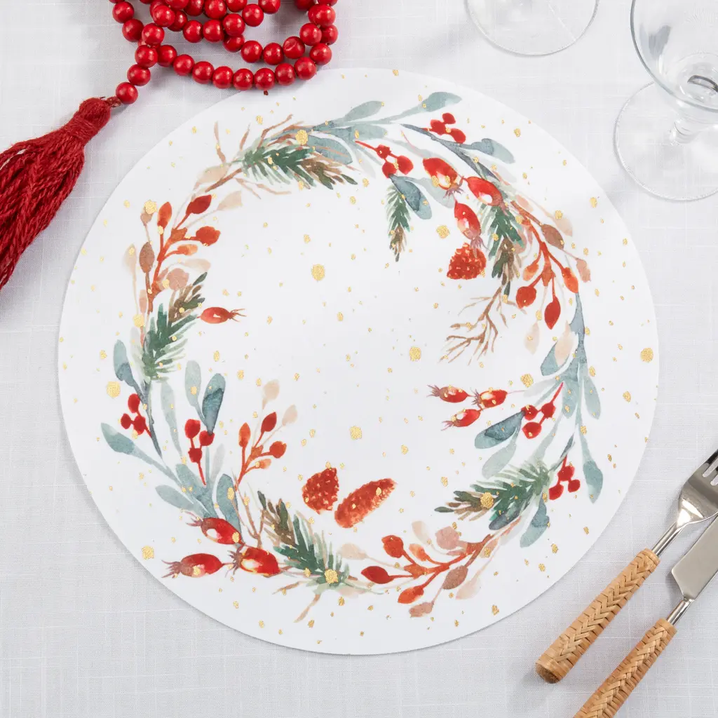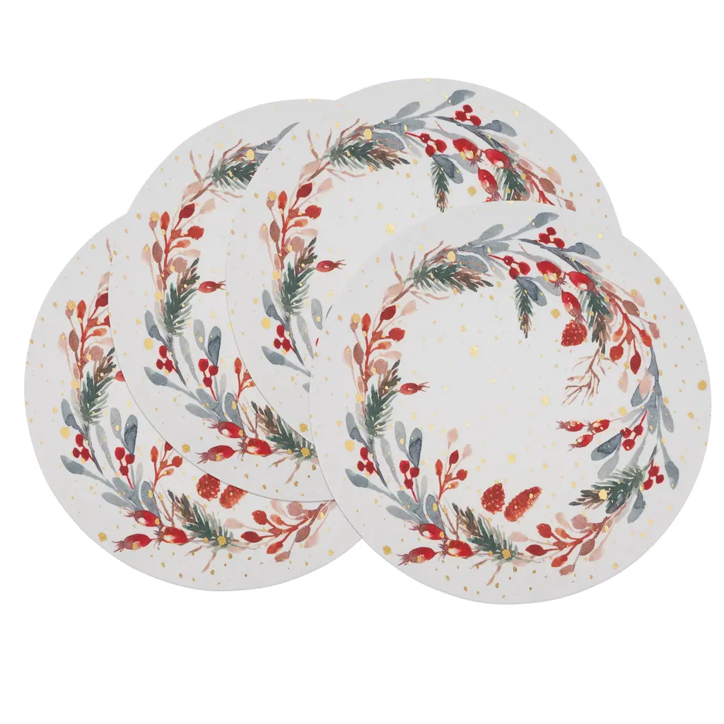 Yuletide Charm Red Berry Wreath Placemat, Set Of 4