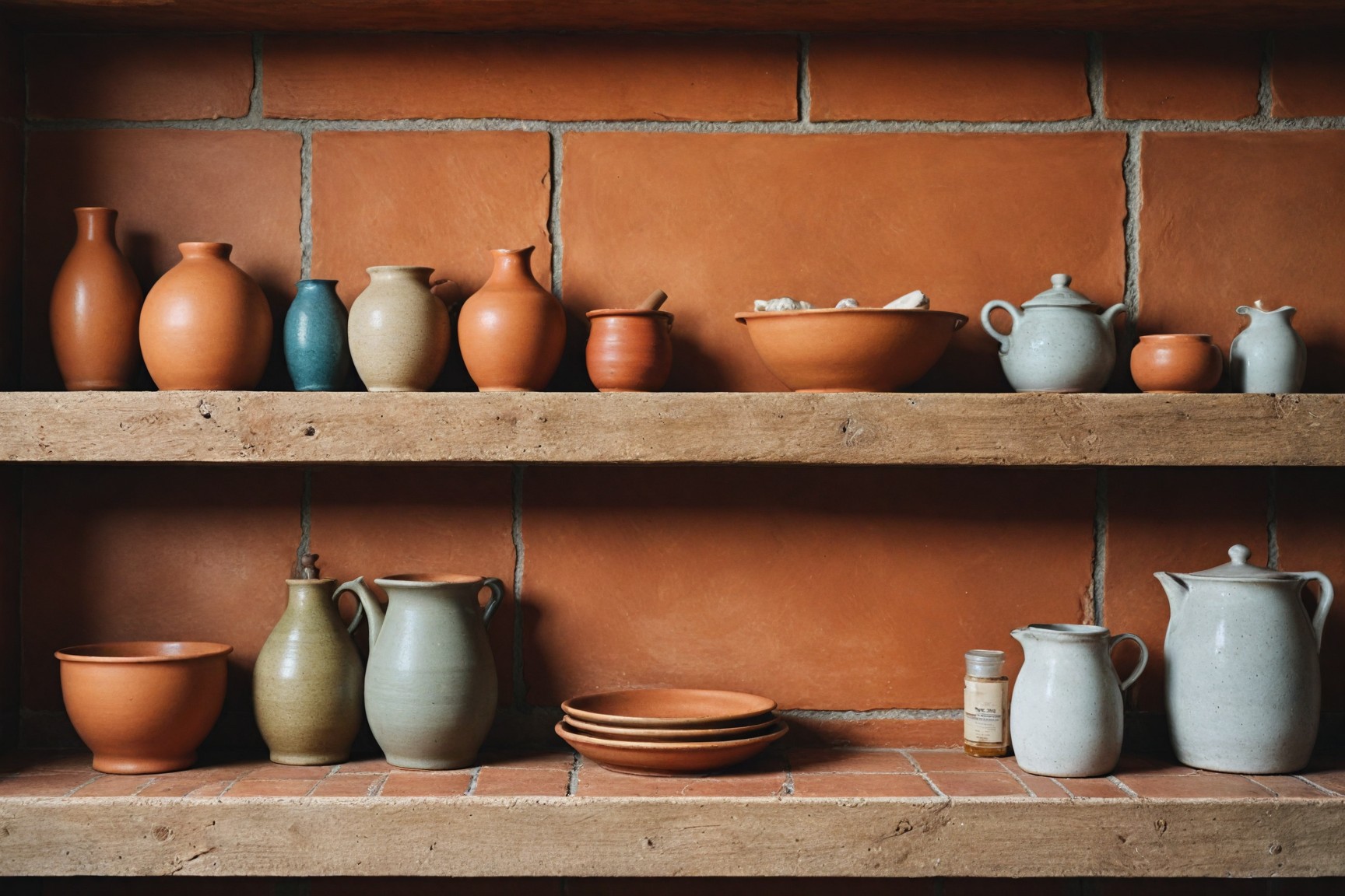 Displaying handcrafted pottery or artisanal plates on open shelves adds texture and personality. Consider: