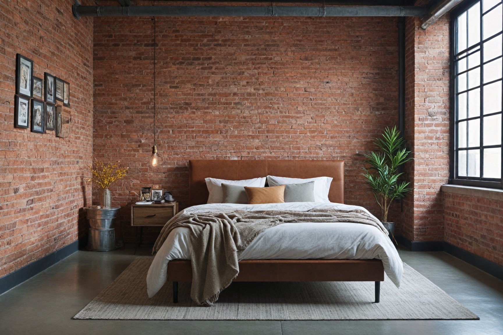 Design a comfortable yet stylish industrial bedroom by using minimalistic furniture and statement pieces. Choose a metal bed frame, simple nightstands, and vintage lighting fixtures. Add warmth with soft textiles like a wool blanket or leather accent pieces. Use a neutral color palette with occasional bold accents to keep the space inviting.