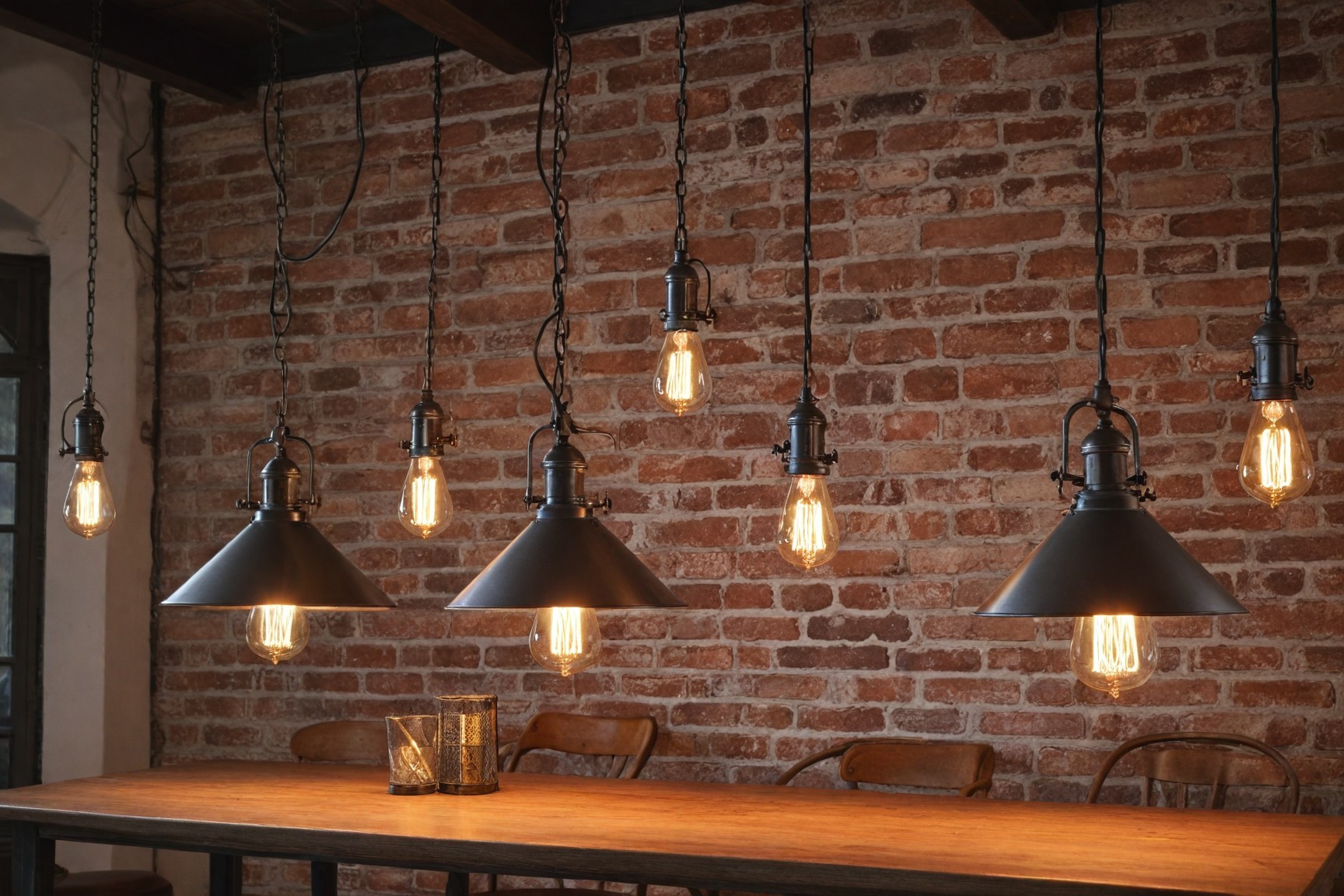Lighting is crucial in industrial decor, with pendant lights and exposed bulbs being signature elements. These lighting solutions not only provide illumination but also accentuate the raw industrial features of a space. Consider using pendant lights with metal shades, Edison bulbs, and track lighting to enhance the industrial vibe. Proper lighting can set the mood and highlight the textures and materials that define industrial interiors.