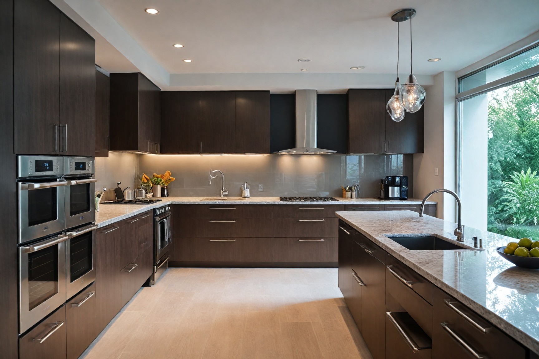 Discuss modern kitchen design ideas, including open layouts, the integration of high-tech appliances, and materials that combine durability with beauty. Consider using stainless steel, glass, and quartz for a sleek and functional kitchen space.