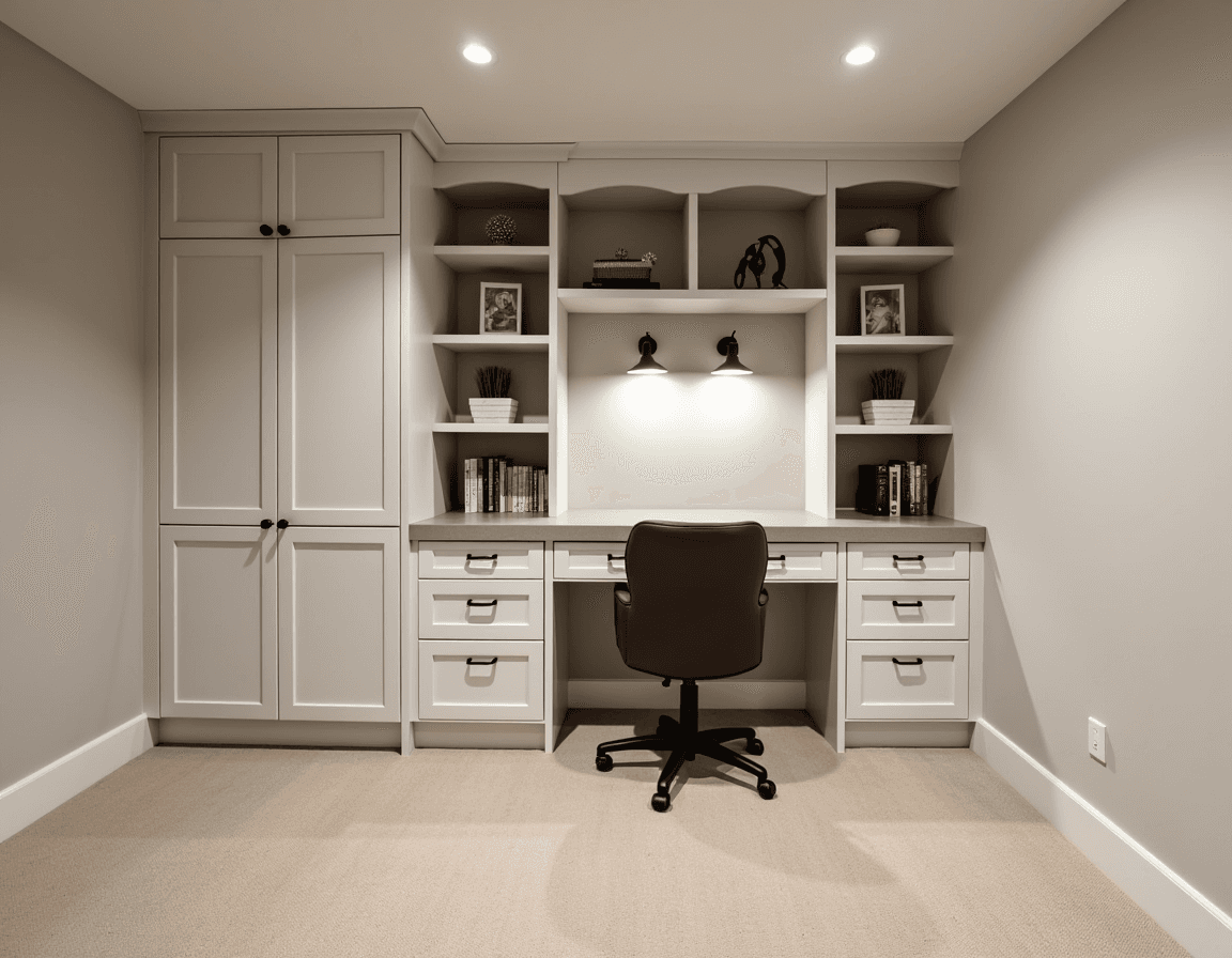 A home office doesn’t need a whole room to itself. A built-in workspace in the basement offers a quiet, private spot to focus — whether you’re working from home, paying bills, or sorting through paperwork.