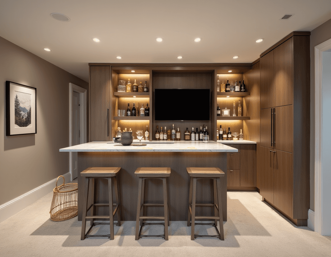 Add a modern basement bar with minimalist cabinetry