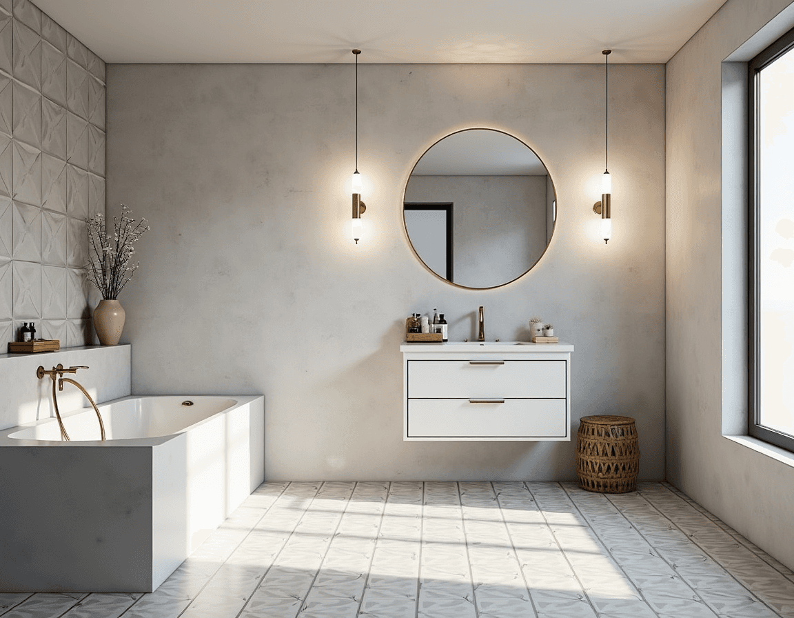 For a bit more punch, try geometric wallpaper, colorful floor tiles, or graphic mosaics. The right pattern can turn a blank-slate bathroom into something with rhythm, contrast, and personality — all without sacrificing simplicity.