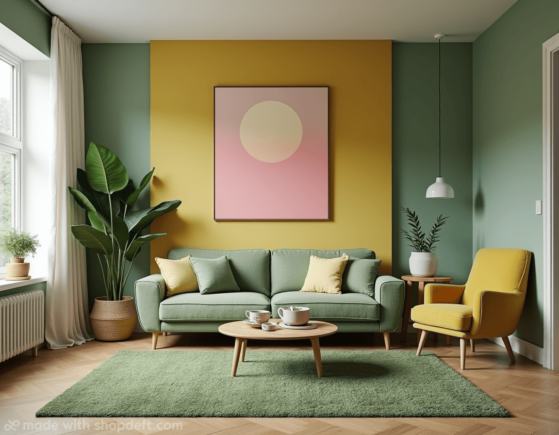 For example, with a sage green couch, you could consider a muted green as your dominant color. The 30% will be your secondary color, such as yellow accent walls, chairs, etc. Finally, the 10% comes in accents, like pink or red wall art.