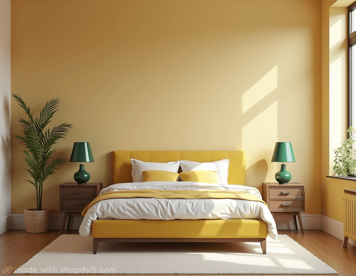Using Imagine, prompt Onton’s AI (the more descriptive, the better!) to get you a perfect visualization of your space in seconds. For example, select “Bedroom” and “Vintage,” type in “Yellow room with beige accents and green lamps,” and you’ll generate something like this: