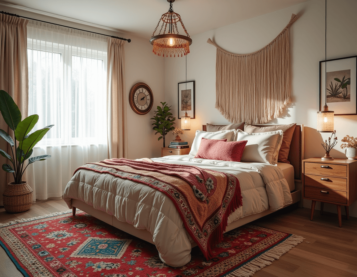 An 8x10 bed rug is a great choice for medium and large bedrooms, offering plenty of space to frame a queen bed and reach the edge of the nightstands. It’s a versatile rug dimension, lending itself to varied bedroom aesthetics. A larger rug with a neutral, earthy tone can ground the room, while a maximalist print brings an energetic pop.