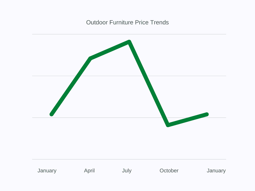 Have you ever noticed that summer clothes usually go on sale right at the end of the warm season? The same applies to outdoor furniture. We ran a price comparison across 100 popular outdoor brands and products including umbrellas, outdoor sectionals, chairs, and other patio furniture. What we found is that brands across the board lower their prices dramatically (or offer sales) right around August and September. This data lines up perfectly with Labor Day sales which usually see the largest drop in outdoor furniture pricing. Those prices continue through December and start to rise right after New Years when people are starting to think about the upcoming spring and summer seasons.