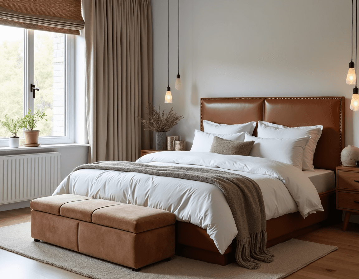 Instead, aim for a curated look. Pair that tailored leather sofa with a couple of plush, rounded boucle chairs. Adorn matching bedside tables with unique decor, like a lamp on one and a sculptural vase on another. The goal isn’t chaos, it’s contrasts that feel thoughtful and tell a richer visual story.